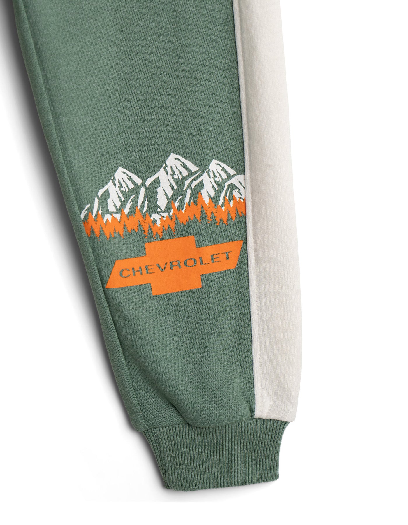 • Cool retro Chevy car artwork; Pull on closure; Jogger style sweatpants; Rib knit crew neck collar; Ribbed sleeve cuffs, ankle cuffs, and waist for a better fit; Awesome screen print design; Elastic waist for comfortable stretch and a better fit; Contrast side stripe on pants; Front and back graphic