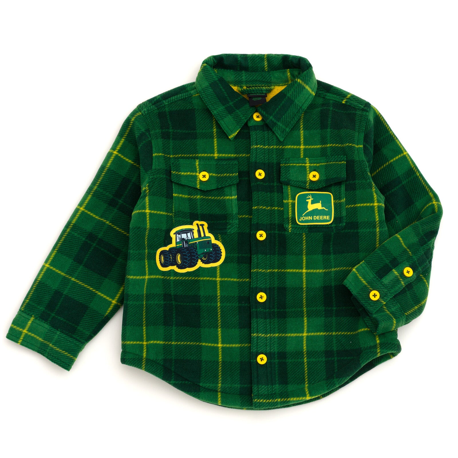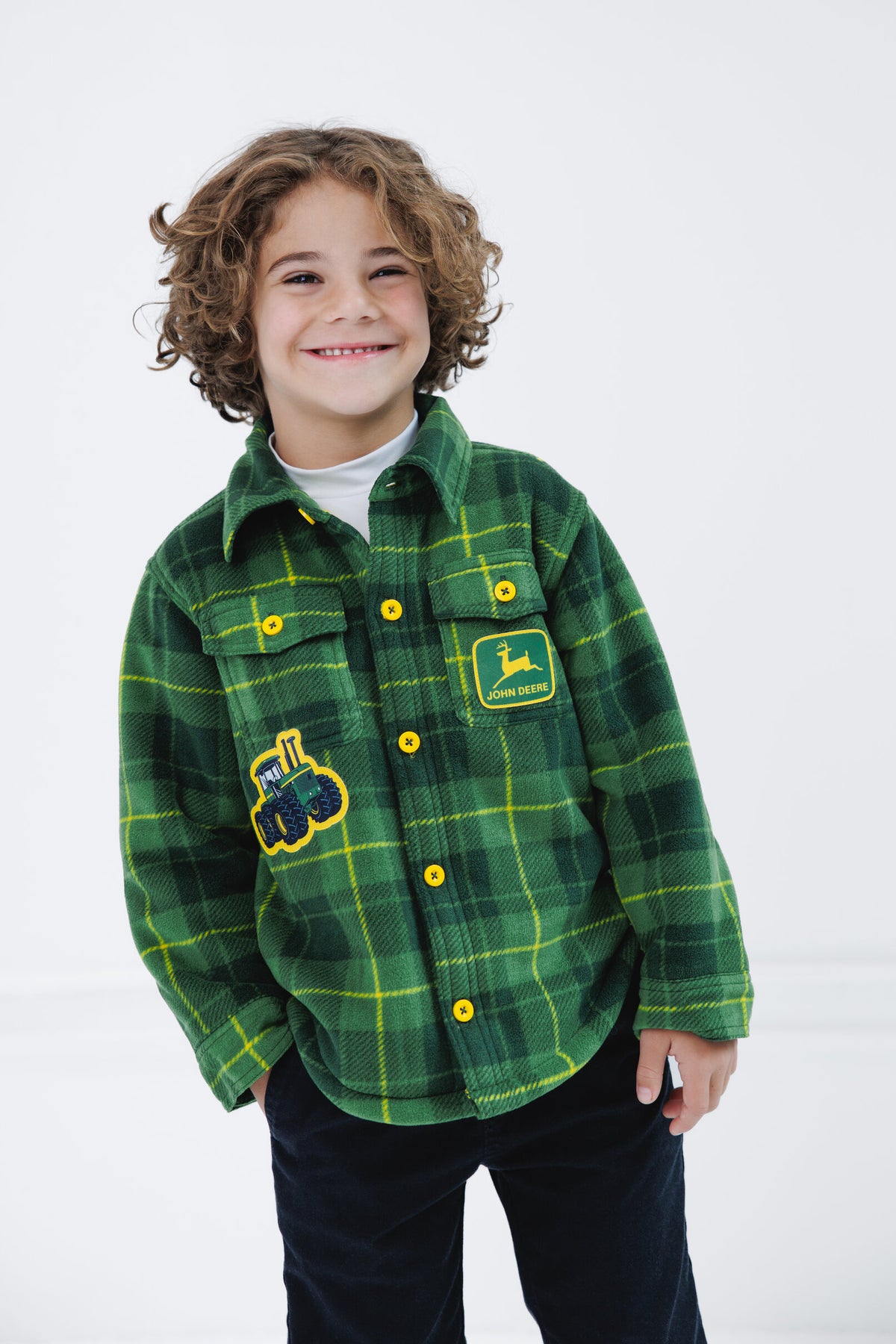 John Deere Tractor Flannel Shacket with Fleece Lining Toddler to Little Kid