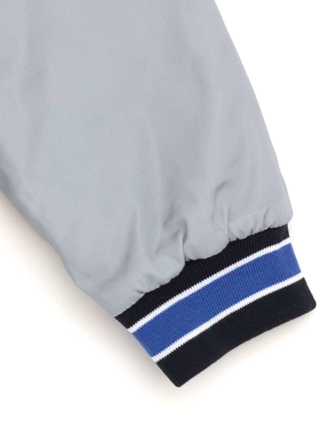• Vintage-style varsity jacket; Contrast raglan sleeves; Ribbed sleeve cuffs and waist for a better fit; Zip up front for easy dressing; Functional pockets; Cozy mock neck style; Diamond quilted lining for comfort and style; Cool screen print sublimated patch artwork; Front and back graphic
