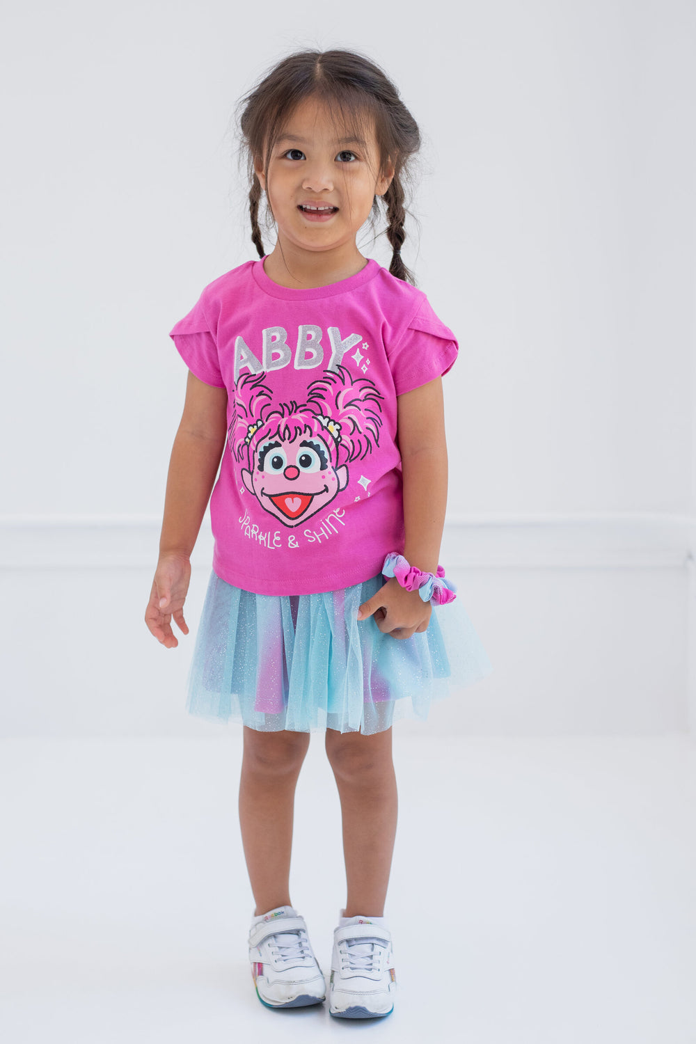 Sesame Street Abby Cadabby T-Shirt Tulle Mesh Skirt and Scrunchie 3 Piece Outfit Set