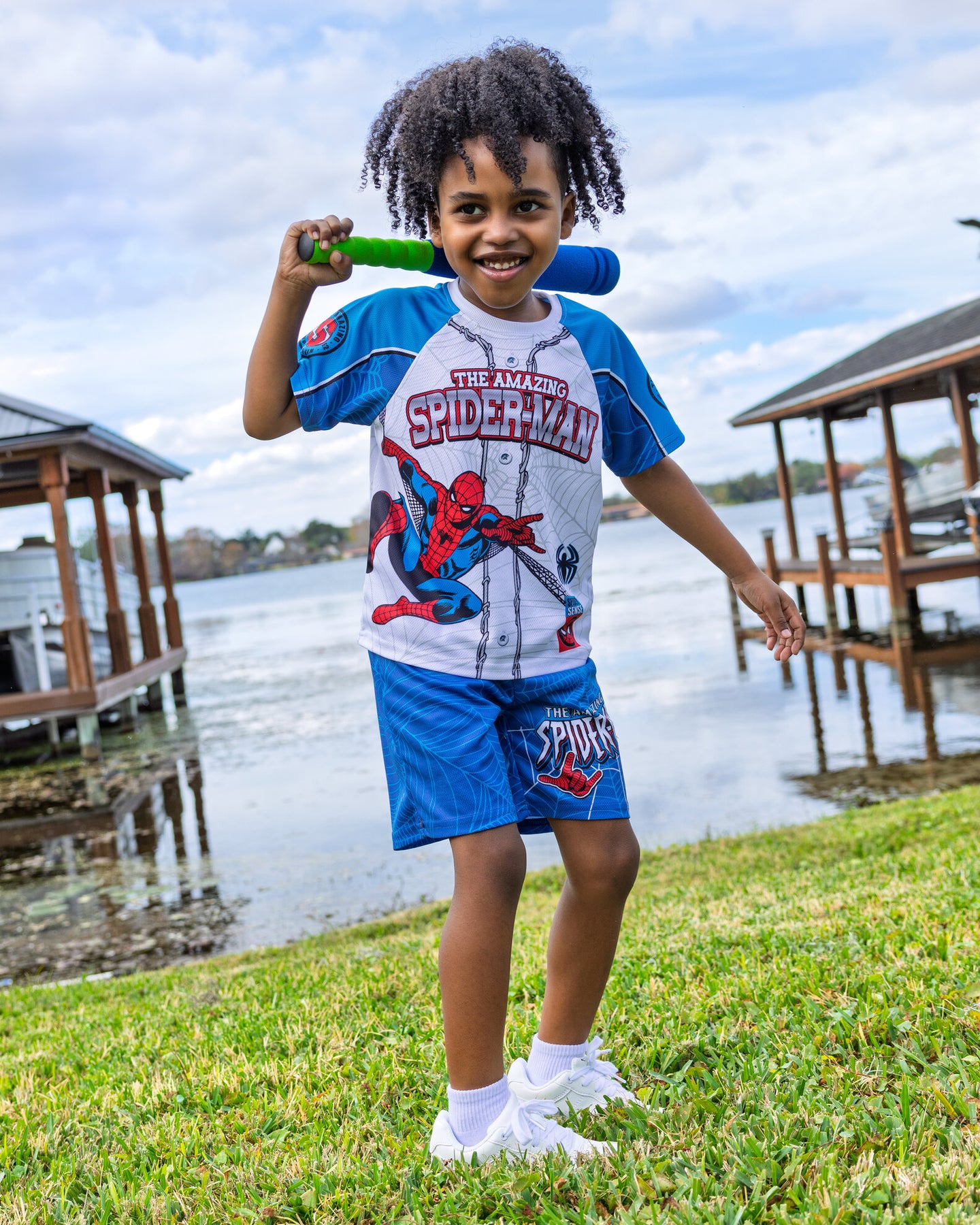 Marvel Spider-Man Mesh Baseball Jersey T-Shirt and Shorts Outfit Set Toddler to Big Kid