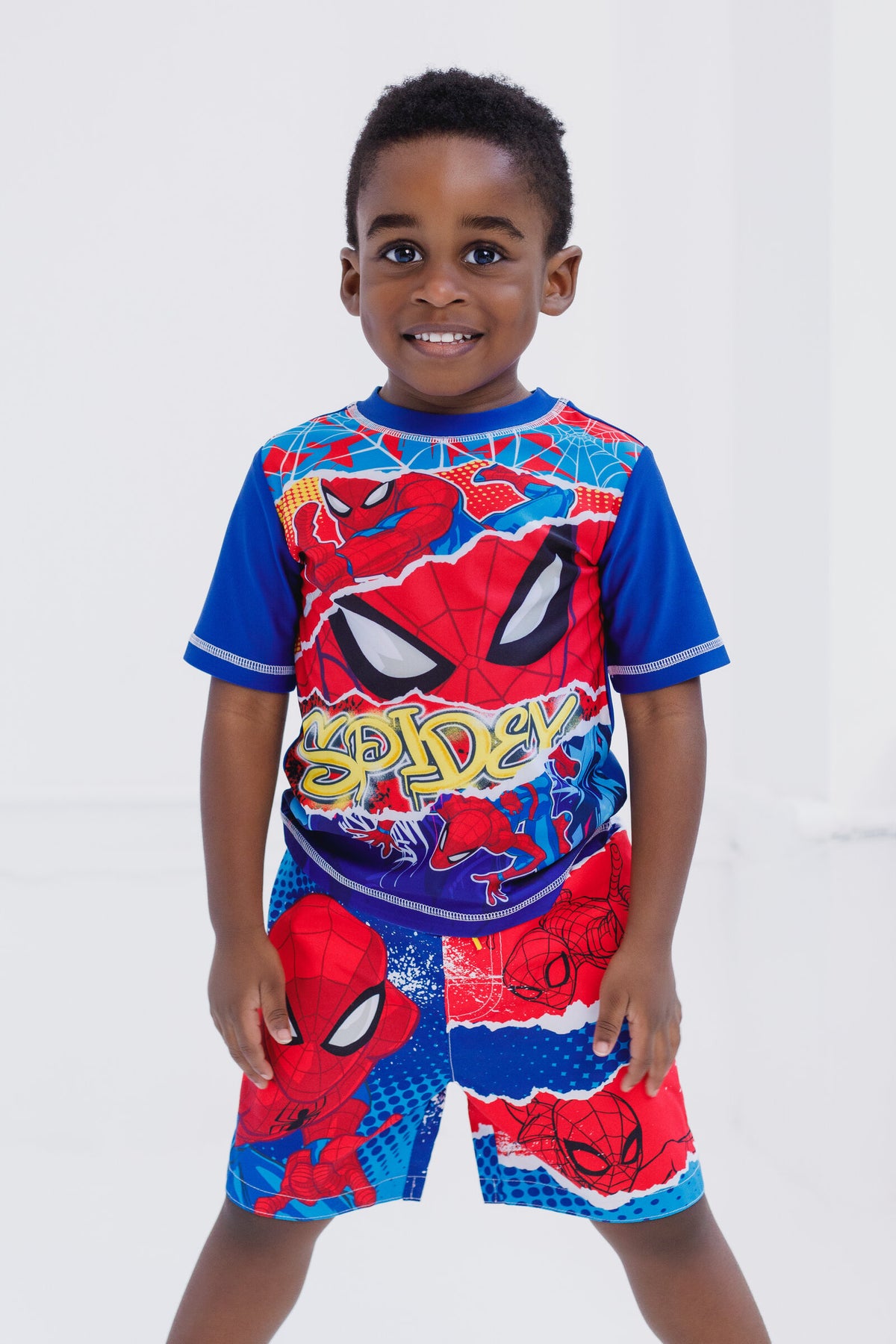 Marvel Spider-Man UPF 50+ Rash Guard and Swim Trunks Outfit Set