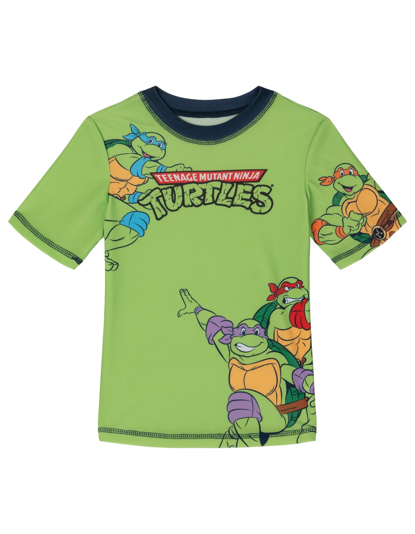 • Officially licensed Teenage Mutant Ninja Turtles Donatello Raphael Leonardo Michelangelo toddler boys short sleeve swim shirt top and swimming shorts bottoms
