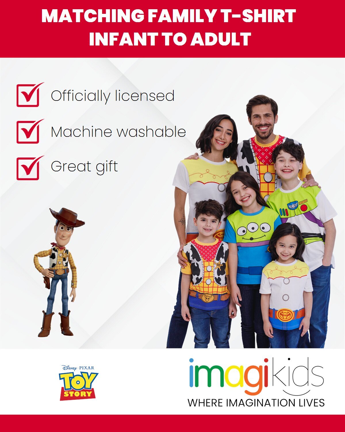 Your family is ready for a Disney adventure in these stylish matching family Toy Story tshirts! Become your favorite Toy Story character in these soft and comfy short sleeve tees designed to look like Sheriff Woody, Space Ranger Buzz Lightyear, Cowgirl Jessie, Forky, Dinosaur Rex, and the little green Aliens! With baby, kids, and adult sizes, the whole family can join the Toy Story fun this Halloween and any day of the year!