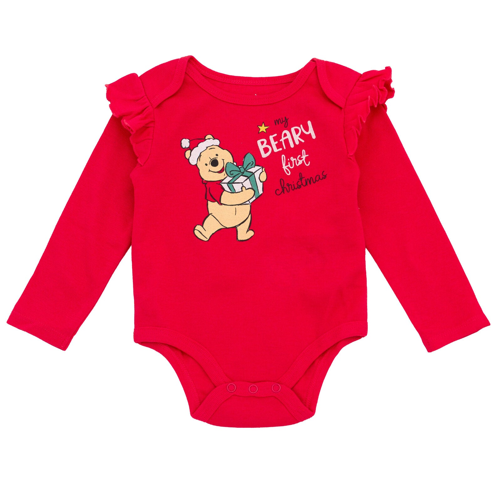 Disney Winnie the Pooh Christmas Baby Girls Bodysuit, Pants and Headband 3 Piece Outfit Set Newborn to Infant