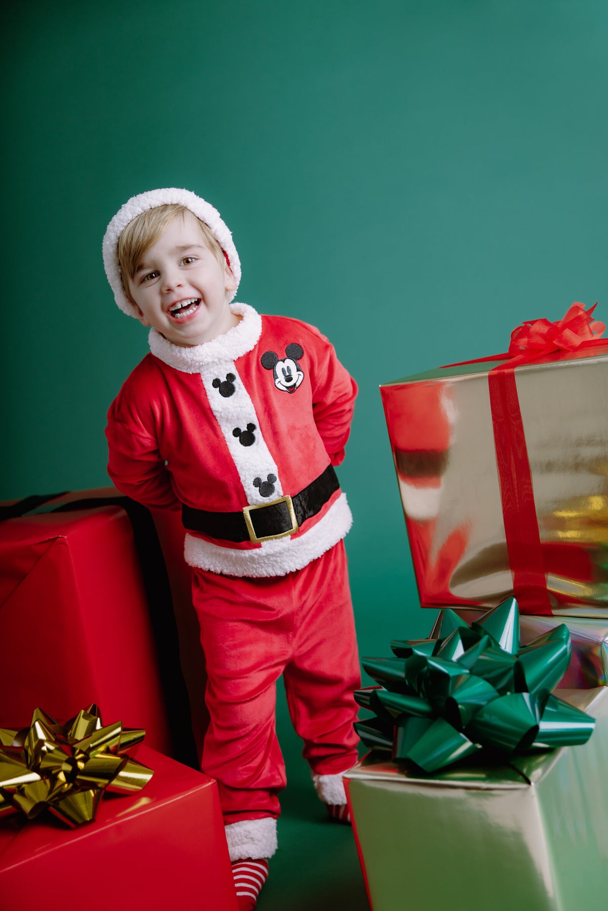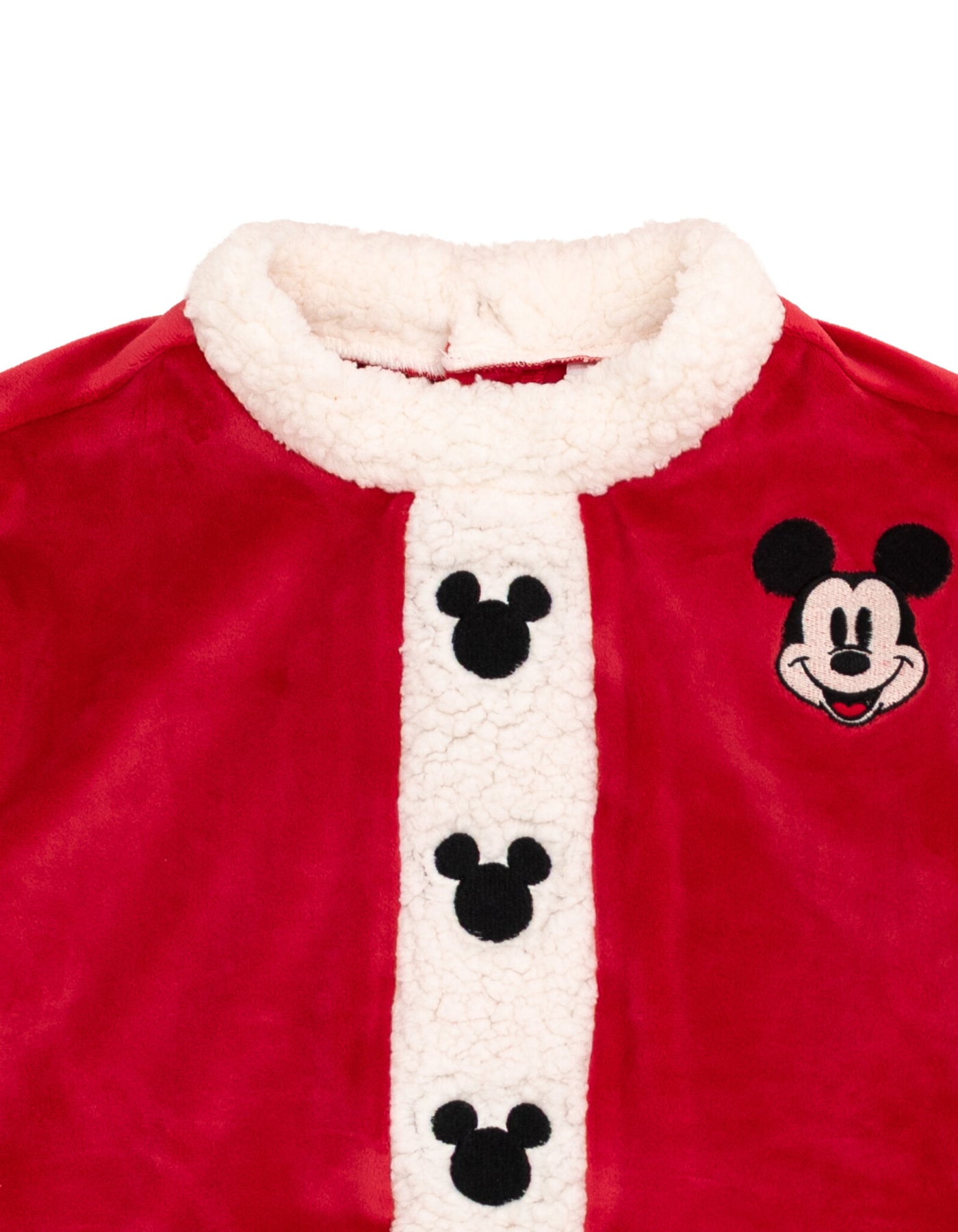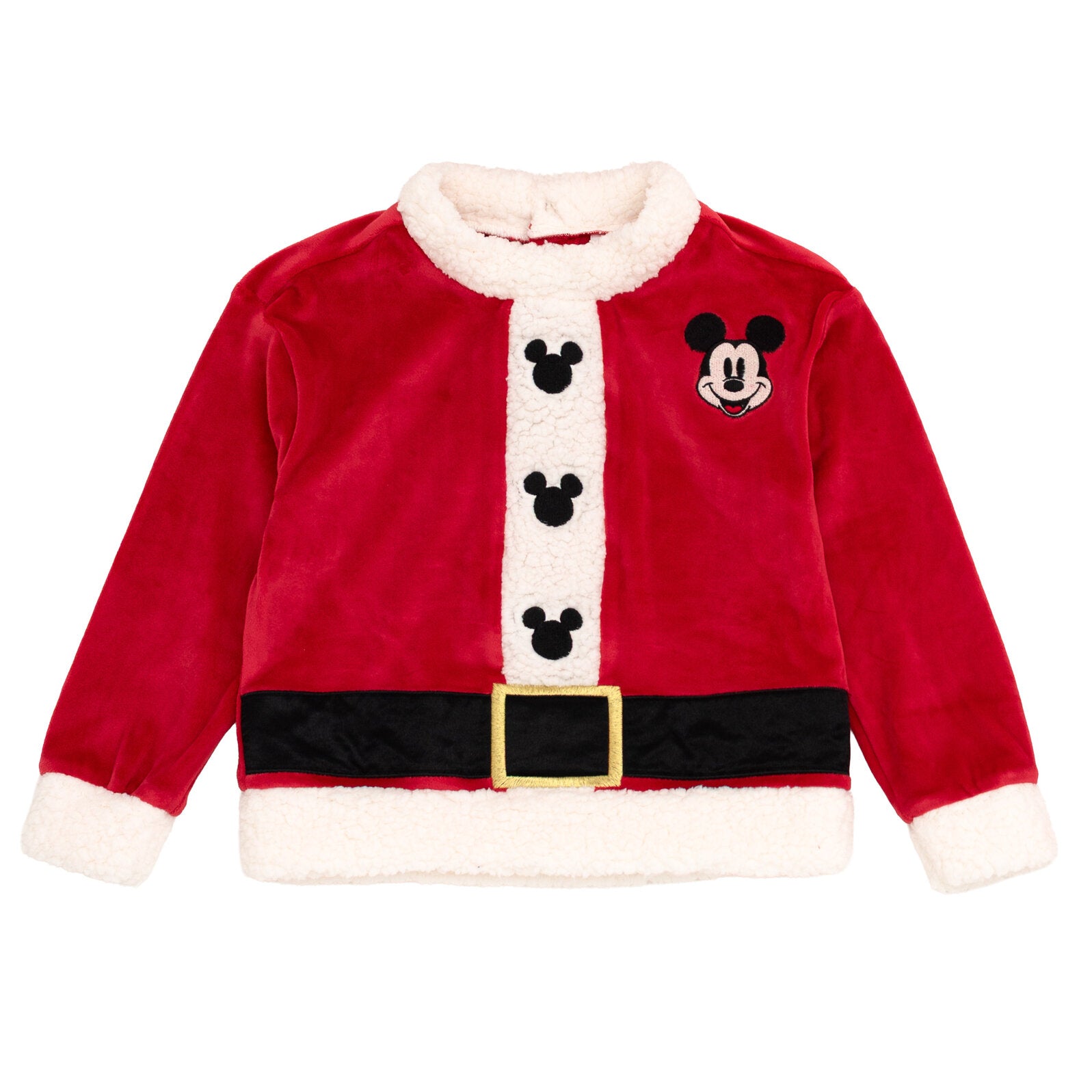 Get into the holiday spirit with this Disney Mickey Mouse Christmas velour sweatshirt, jogger pants, and Santa hat 3-piece outfit set, suitable for newborns to big kids. This cozy ensemble features everyone's favorite mouse in festive red and white colors, making it perfect for Christmas celebrations and family gatherings. Whether you're lounging at home or out spreading cheer, this adorable outfit is sure to be a hit. Make your little one feel like a part of the magic with this cute and comfortable Disney-themed Christmas ensemble.