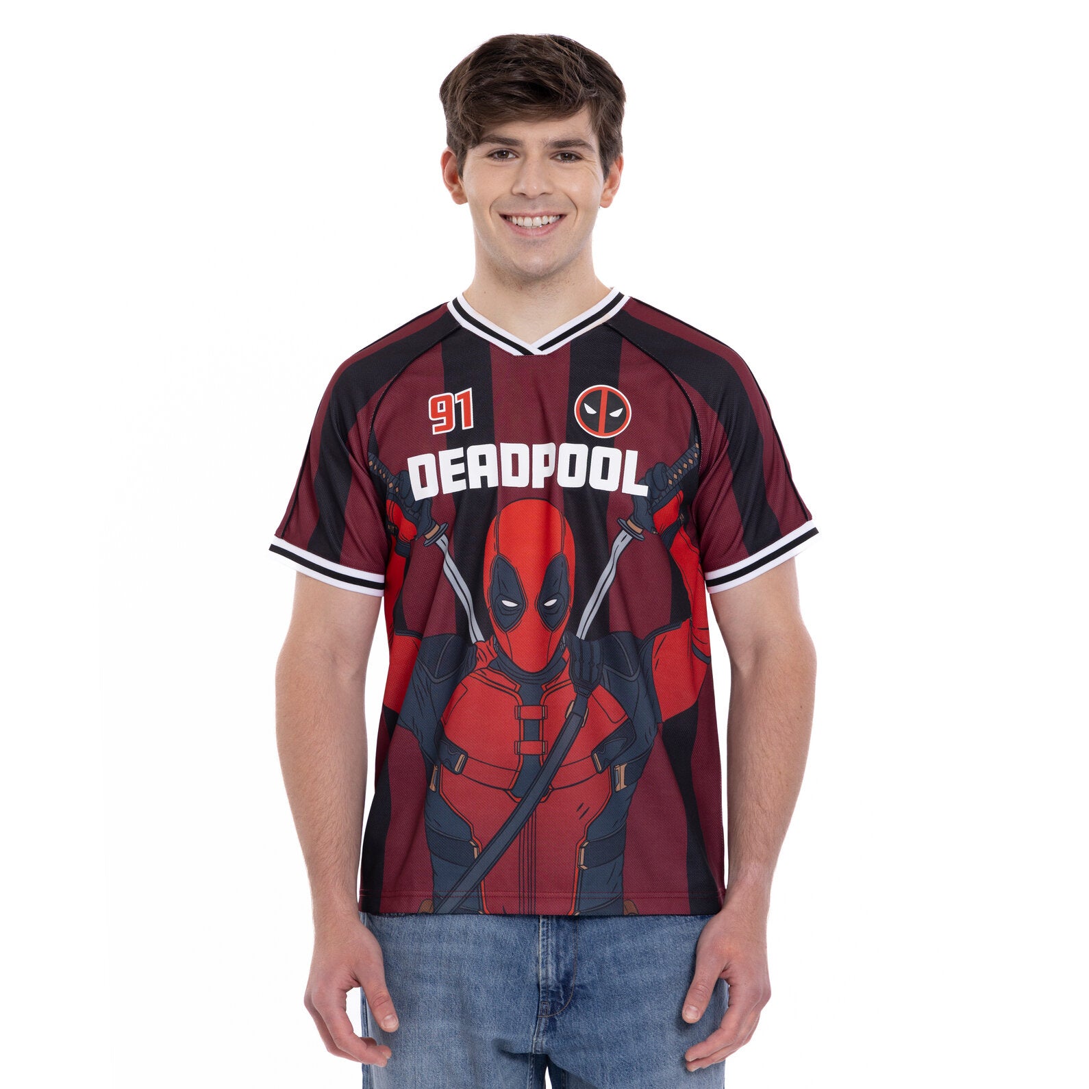 Marvel Deadpool Mesh Soccer Jersey Athletic V-neck T-Shirt Adult