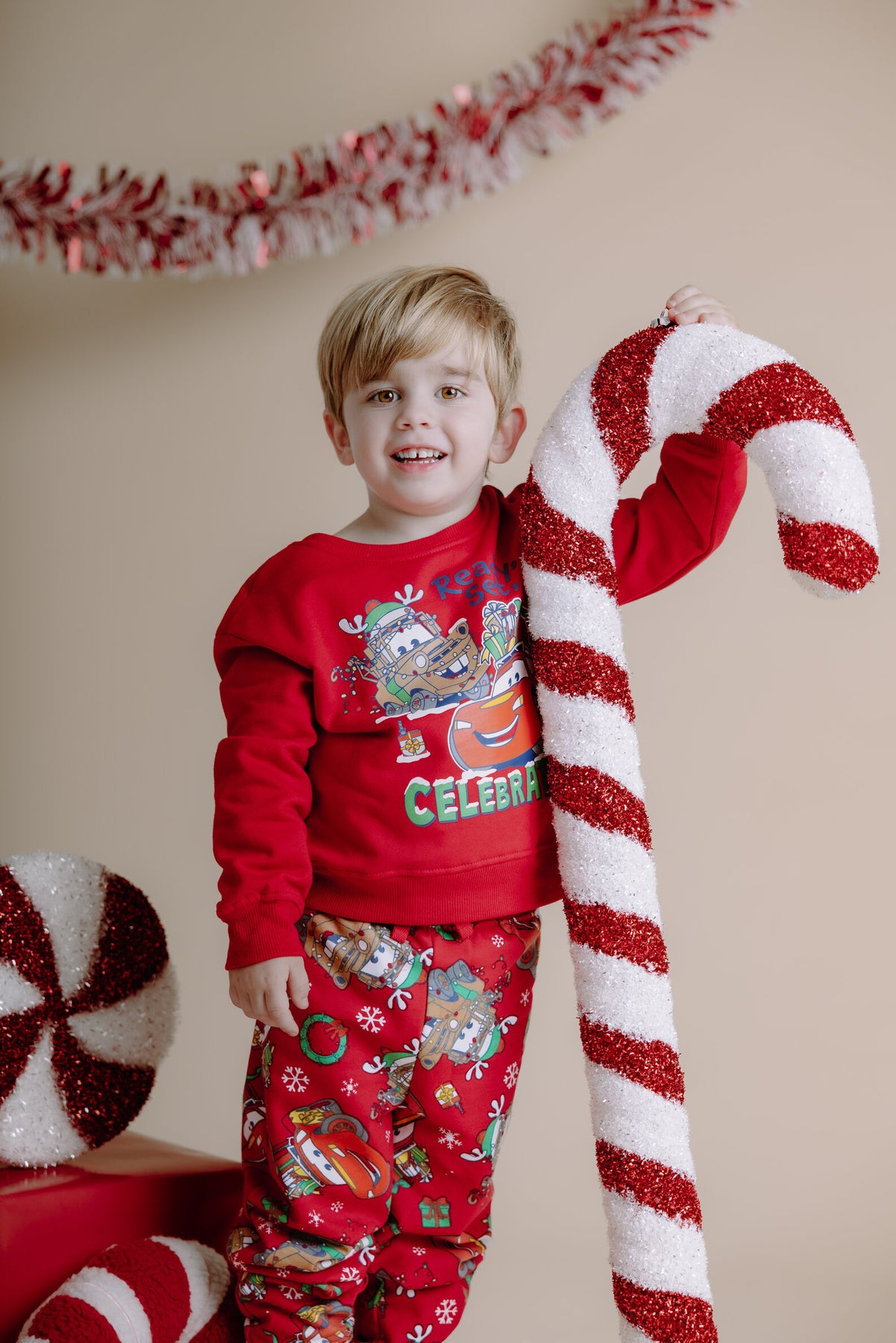 Disney Cars Christmas Fleece Pullover Sweatshirt and Jogger Pants Outfit Set Toddler to Big Kid