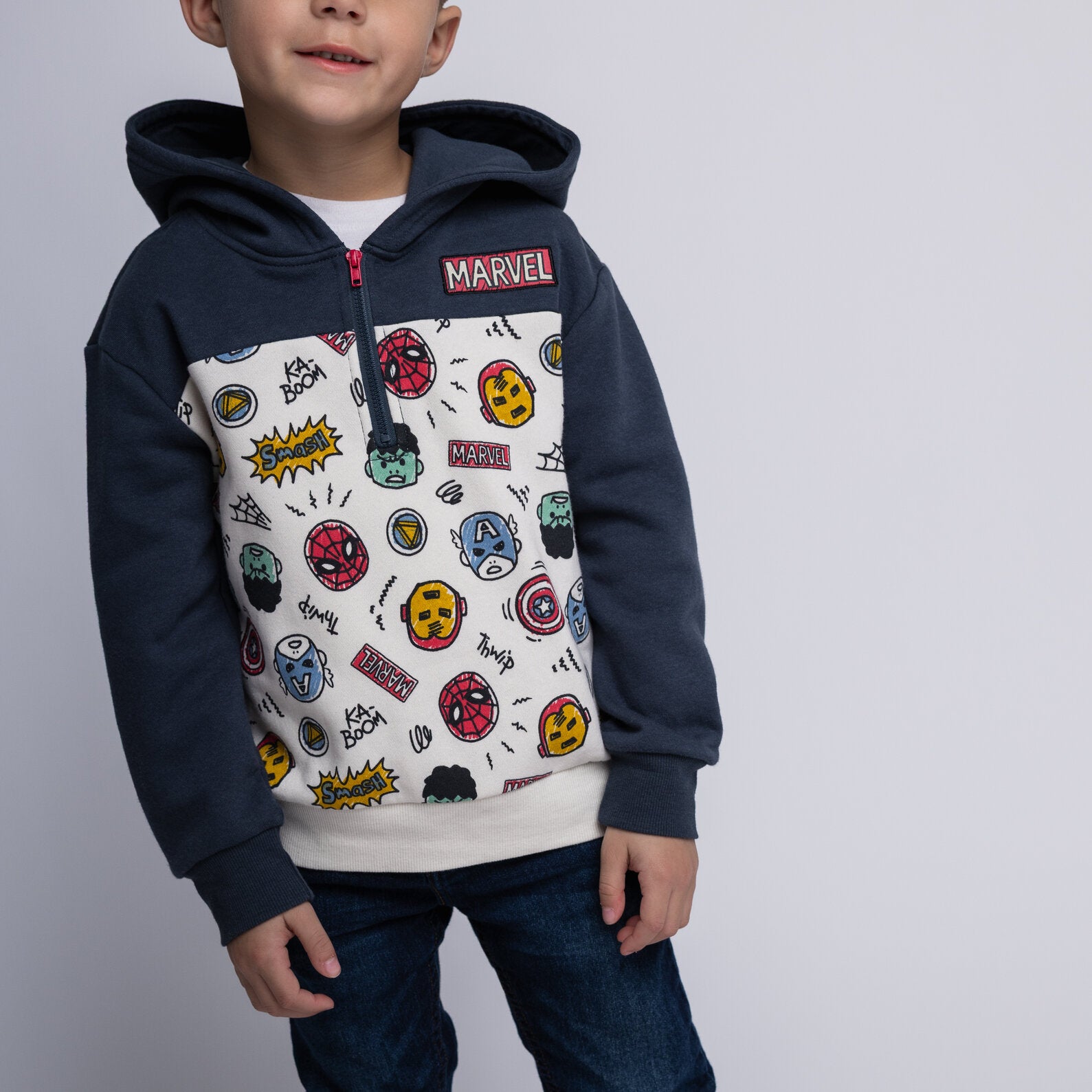 - Officially licensed Marvel Spider-Man Iron Man Captain America Hulk toddler boys long sleeve graphic hooded sweatshirt