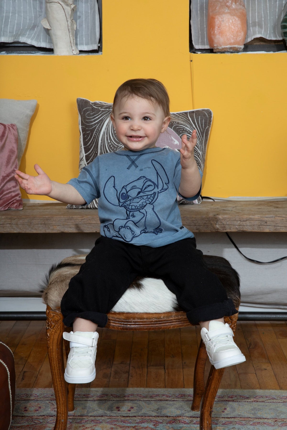 Get ready for some ohana fun with our Disney Lilo and Stitch Matching Family Drop Shoulder T-Shirt! This adorable tee is perfect for the whole family with sizes for babies, toddlers, kids, and adults. Featuring cute embroidered applique artwork of Stitch on the front and back, this shirt is sure to bring a smile to everyone's face. Made with soft and comfortable fabric, its perfect for any occasion. Whether you're planning a family vacation or just want to show off your love for this classic Disney character, this t-shirt is a must-have. Don't miss out on the chance to match with your loved ones and spread some Disney magic!
