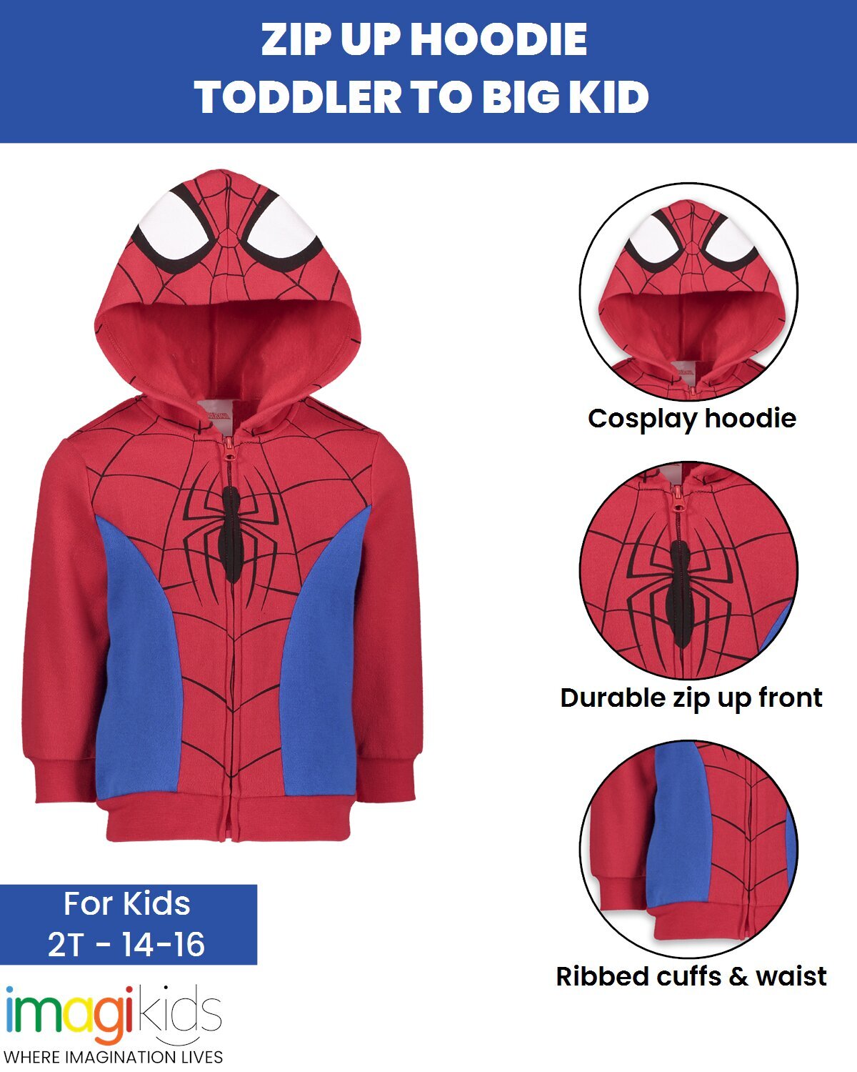 Wrap yourself in heroic style with the Marvel Spider-Man fleece zip up hoodie. This cozy hoodie features a striking design inspired by your favorite web-slinging superhero. Perfect for fans of all ages, it's a must-have item for anyone looking to add a touch of Marvel magic to their wardrobe.
