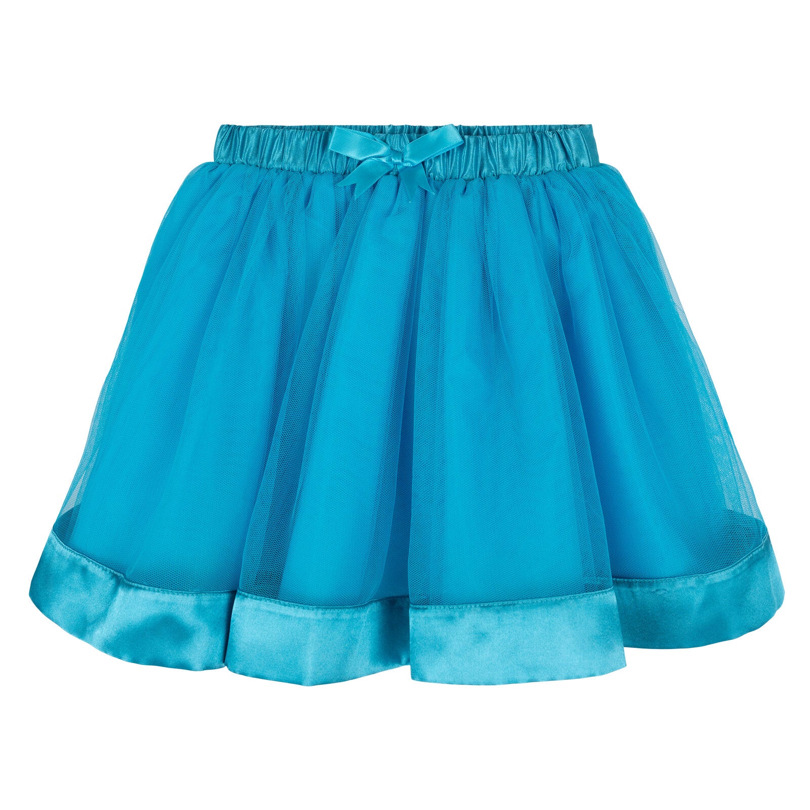 • Tulle skirt with satin hem and taffeta lining; 3D satin bow at waist; Rib knit crew neck collar; Soft hand screen print artwork; Elastic waist for comfortable stretch and a better fit; Pull on closure
