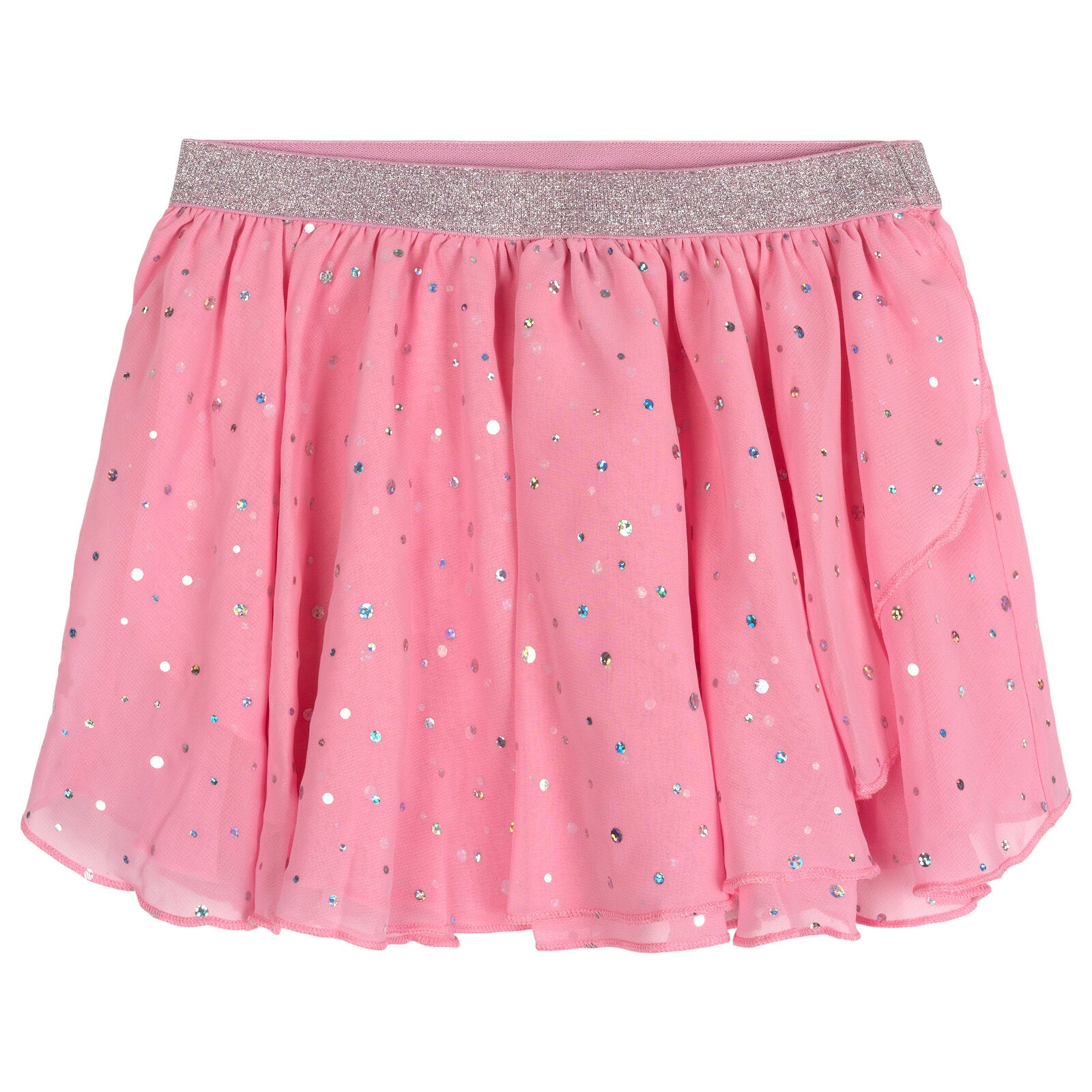 • Athletic unitard romper and removeable chiffon skirt for ballet, gymnastics, and other active sports; Stretchy and breathable material for comfort and ease of movement; All over print design; Cute and stylish flutter sleeves; 4 way stretch fabric for comfort and long-lasting fit; Sparkly lurex elastic waistband; Fun and fashionable glitter design; Elastic waist for comfortable stretch and a better fit; Pull on closure; Stylish bow on back; Round neckline