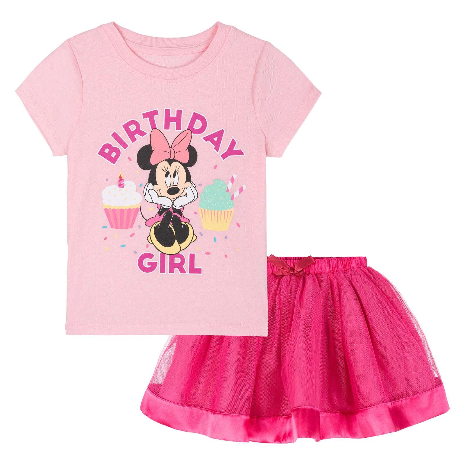 • Officially licensed Disney Minnie Mouse toddler girls short sleeve graphic tee shirt and skirt