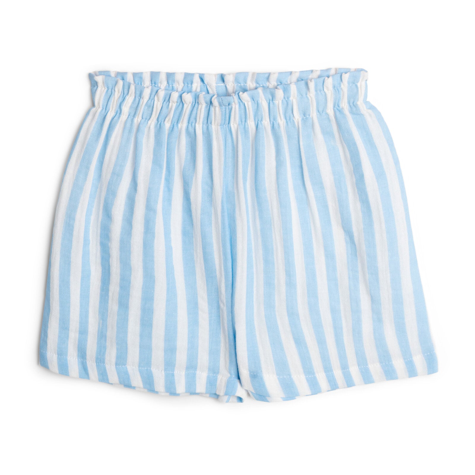 - All over print design; Fashionable ruffle sleeves; Rib knit crew neck collar; Elastic waist for comfortable stretch and a better fit; Pull on closure; Stripe pattern shorts; Paperbag waist for a stylish look; Awesome digital print artwork; Comfortable and lightweight cotton gauze fabric that is perfect for the summer