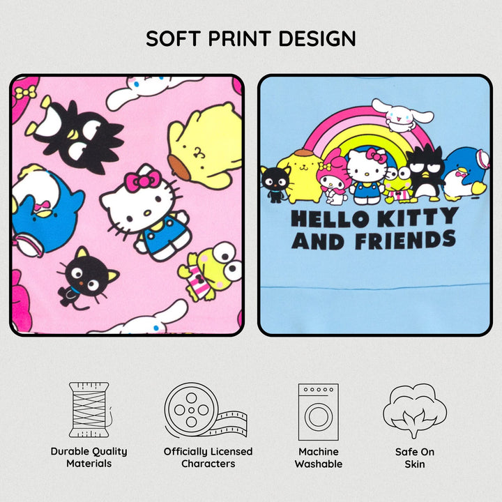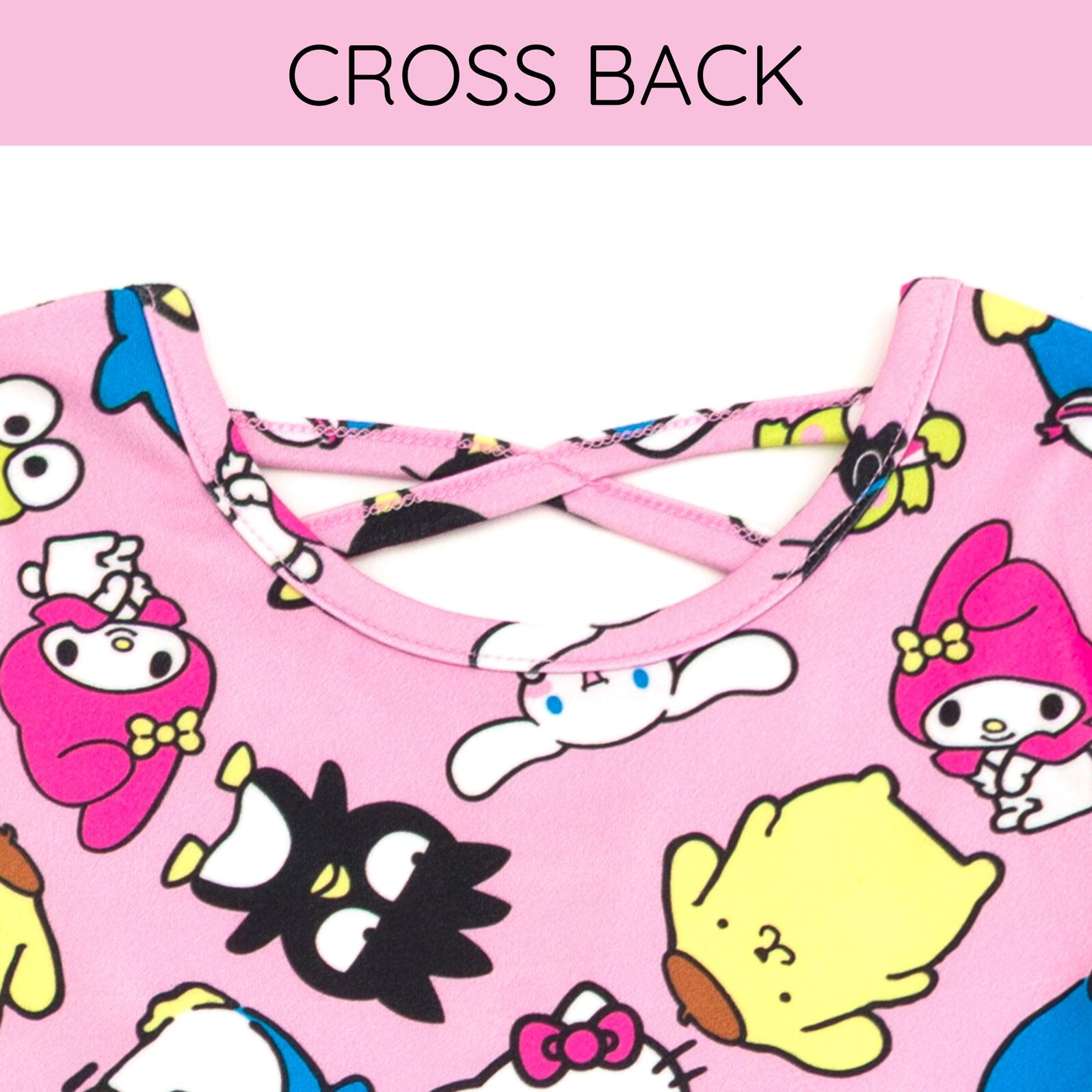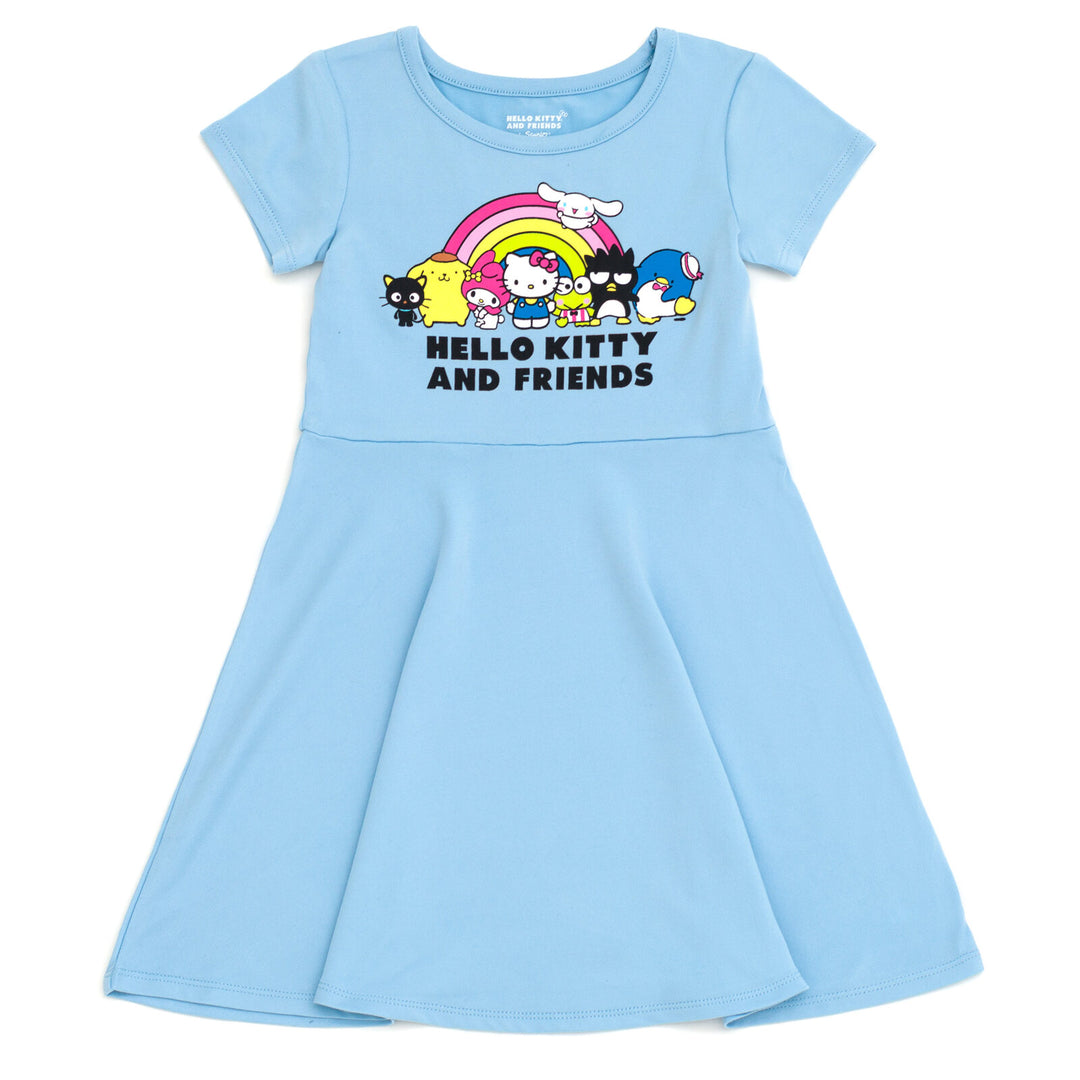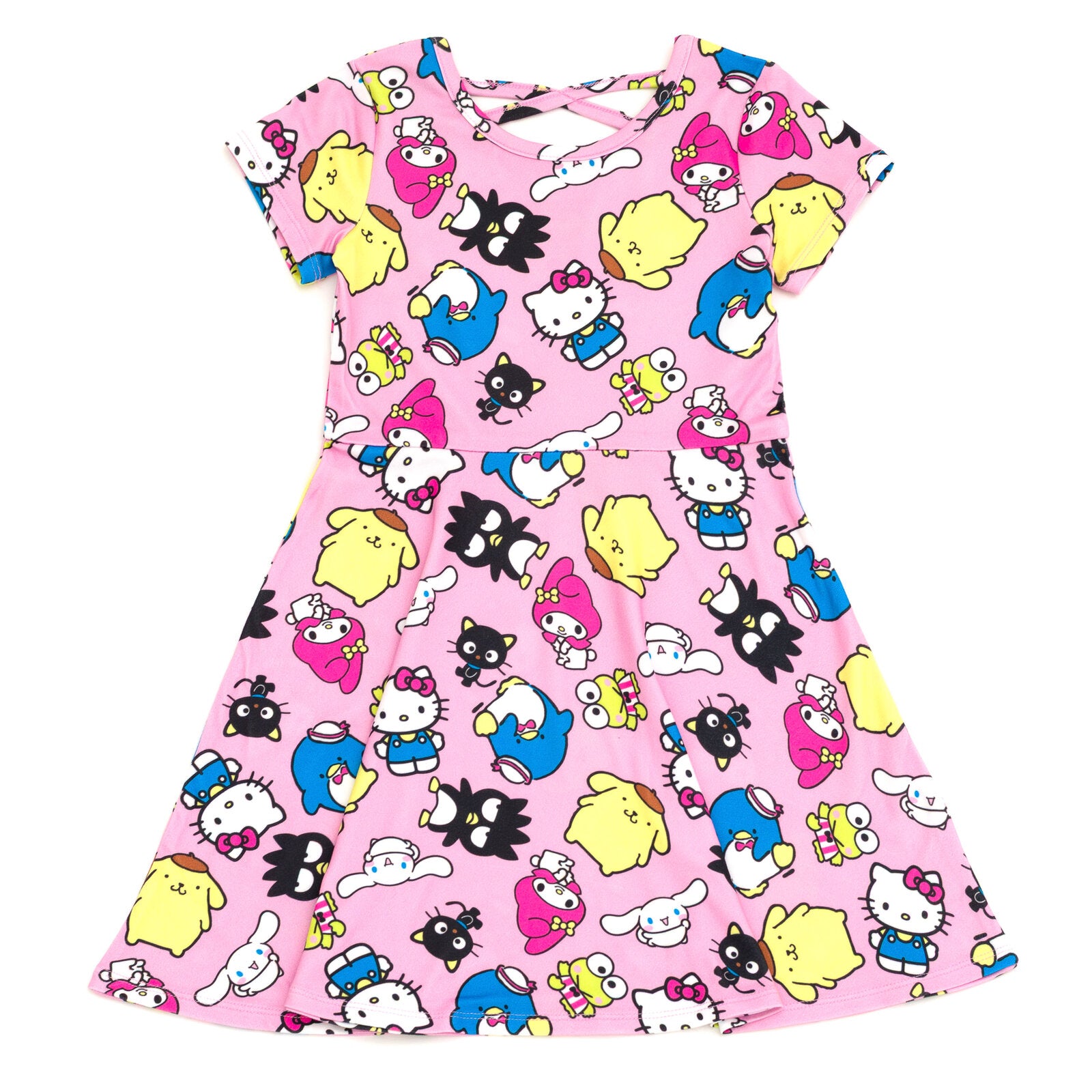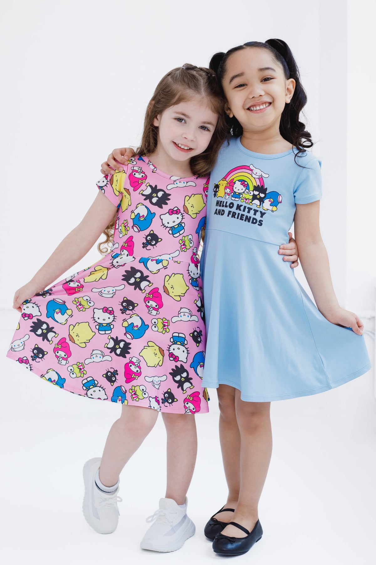 Your Hello Kitty fan is ready for a fun day with her favorite cartoon cat in these cute and comfy Hello Kitty dresses! This stylish set includes 2 short sleeve skater dresses featuring vibrant and adorable artwork of Hello Kitty and her friends Badtz-Maru, Chococat, Cinnamoroll, Hello Kitty, Keroppi, My Melody, Pompompurin, and Tuxedo Sam! Made of a soft and lightweight material that keeps your child comfortable, these fashionable Hello Kitty dresses are the perfect outfits for all day adventure and play!
