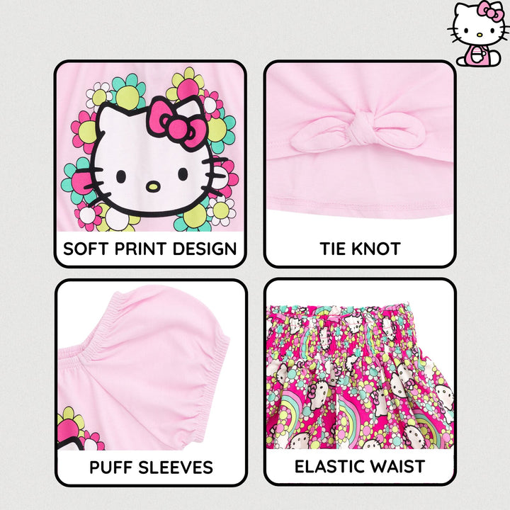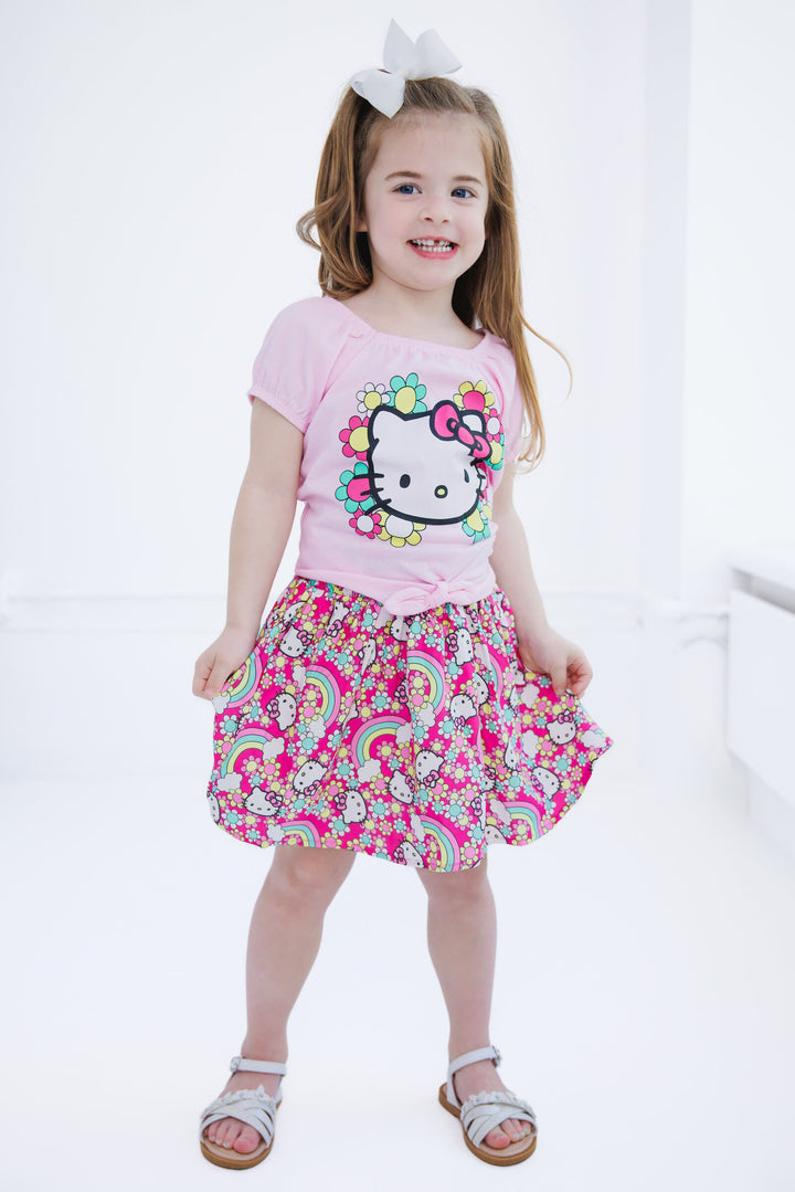 - Officially licensed Hello Kitty toddler girls short sleeve graphic tee shirt and skirt