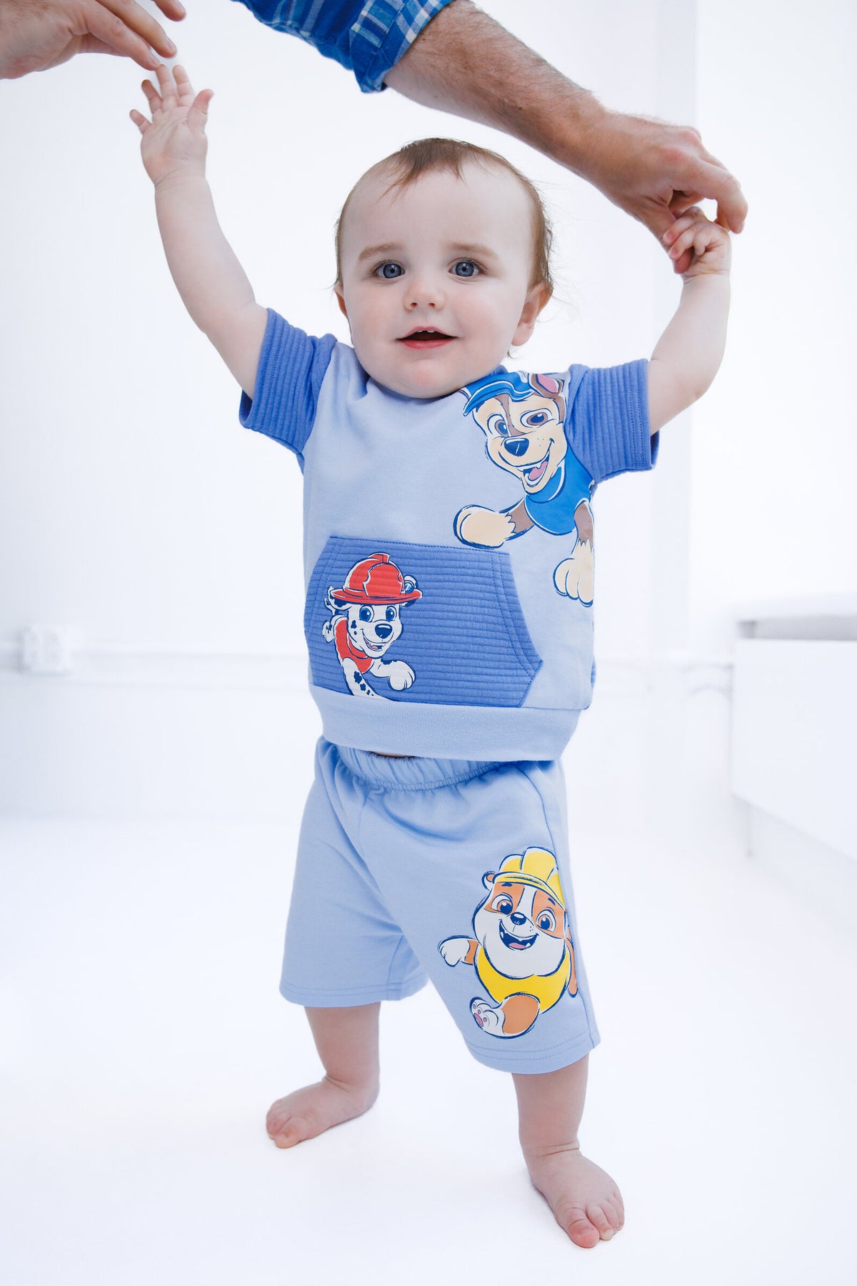 • Officially licensed Paw Patrol Chase Marshall Rubble newborn and infant short sleeve graphic hooded shirt and shorts