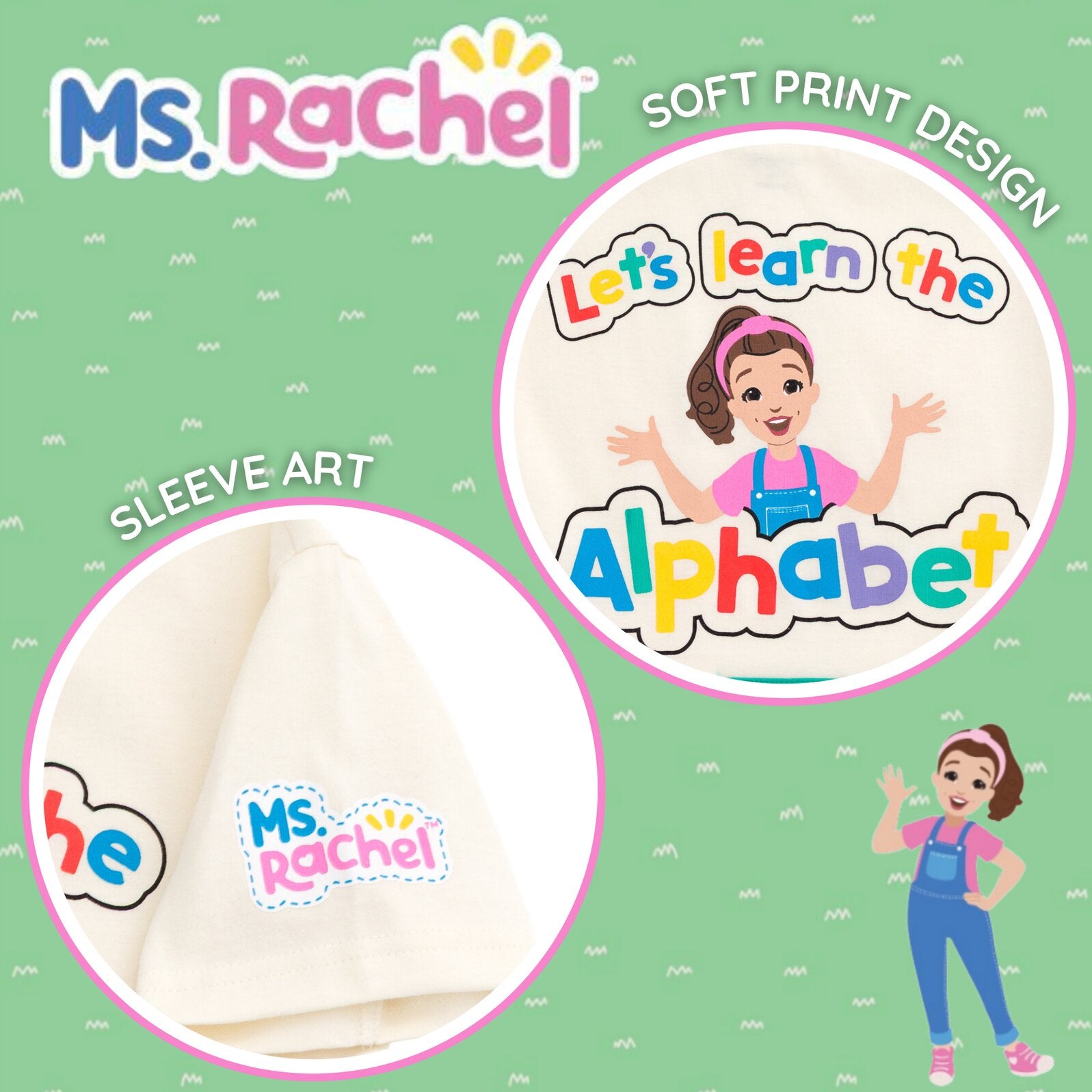 Your little one is ready to learn and play with their favorite teacher in this cute and stylish Ms Rachel crewneck shirt! This comfy short sleeve tee features vibrant artwork of Ms. Rachel and favorite nursery rhymes with a fun 3D flap that your toddler will love to wear! Choose from an adorable Old McDonald farm animal design, a yellow school bus design, or an ABC blocks design! Made of a soft material that keeps your kid comfortable, this fashionable top is perfect for your baby to sing and dance along with Ms. Rachel!
