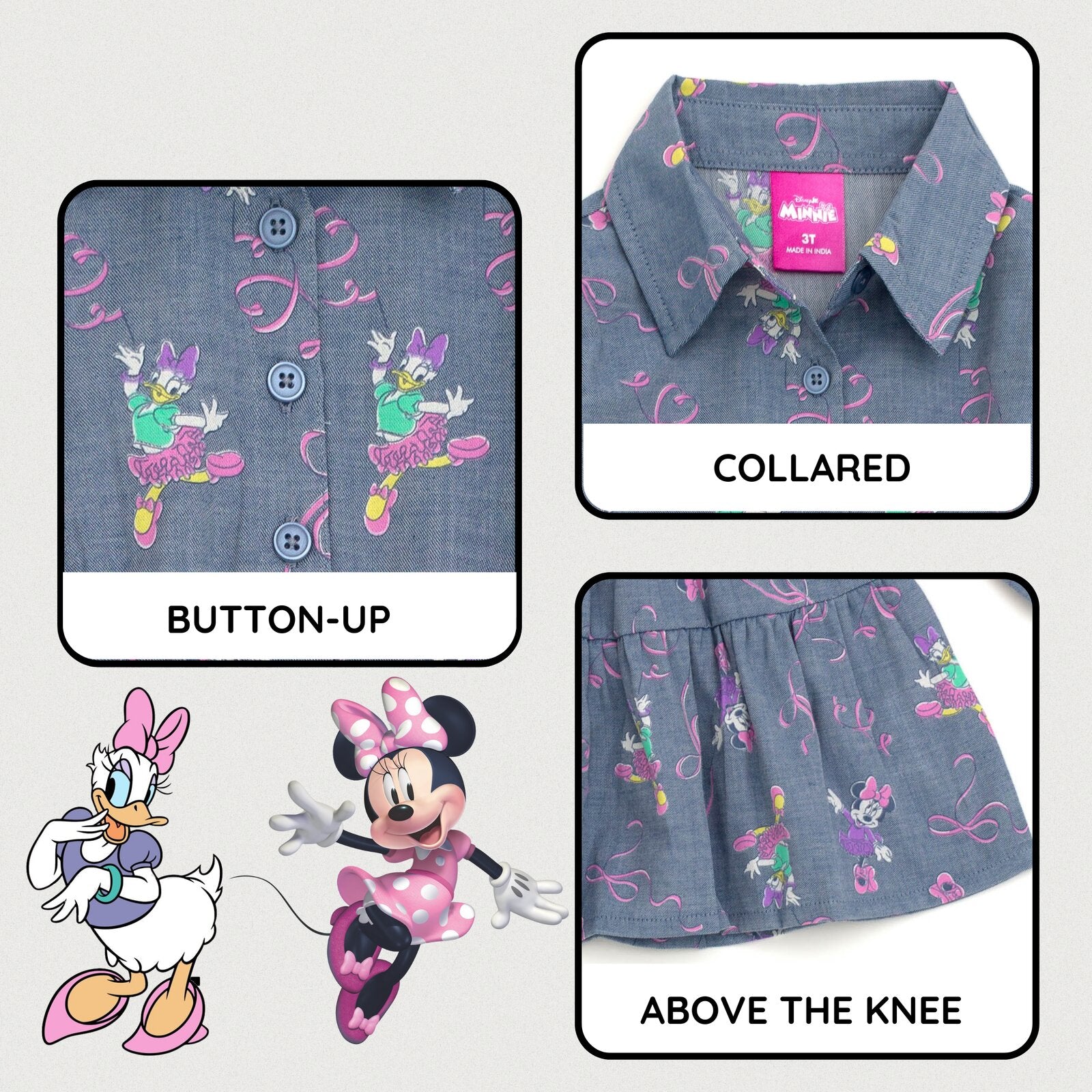 Disney Minnie Mouse Girls Chambray Dress Toddler to Big Kid