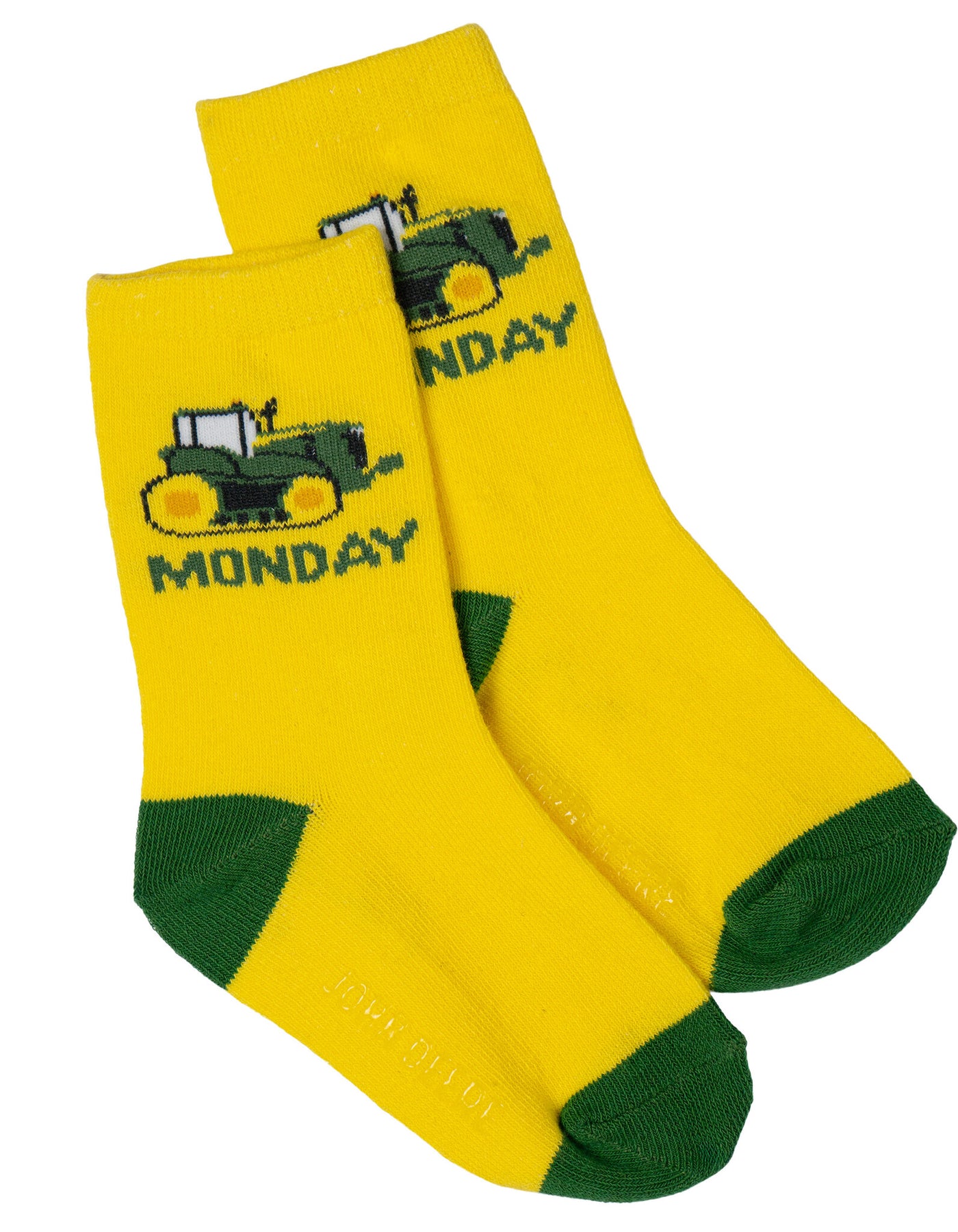 Introducing the John Deere Days of the Week 7 Pack Non-Slip Grip Crew Socks for infants to little kids, perfect for adding a fun touch to their everyday outfit. These colorful socks feature a non-slip grip to keep your little one safe while exploring. Each day of the week is represented by a different truck design, adding excitement to dressing up. Made with high-quality materials, these crew socks ensure comfort and durability for all-day wear. Get your hands on this adorable set and make your child's week extra special.