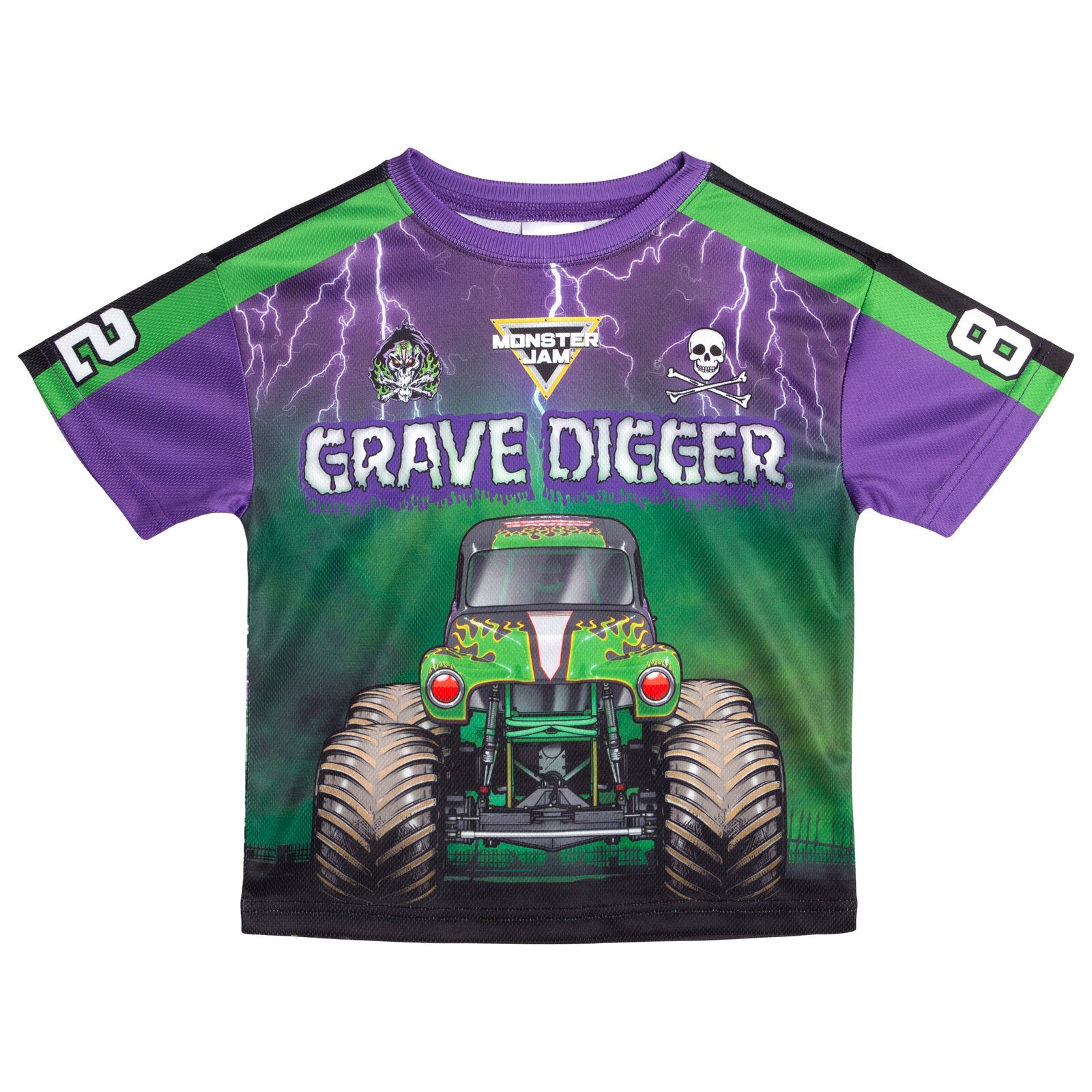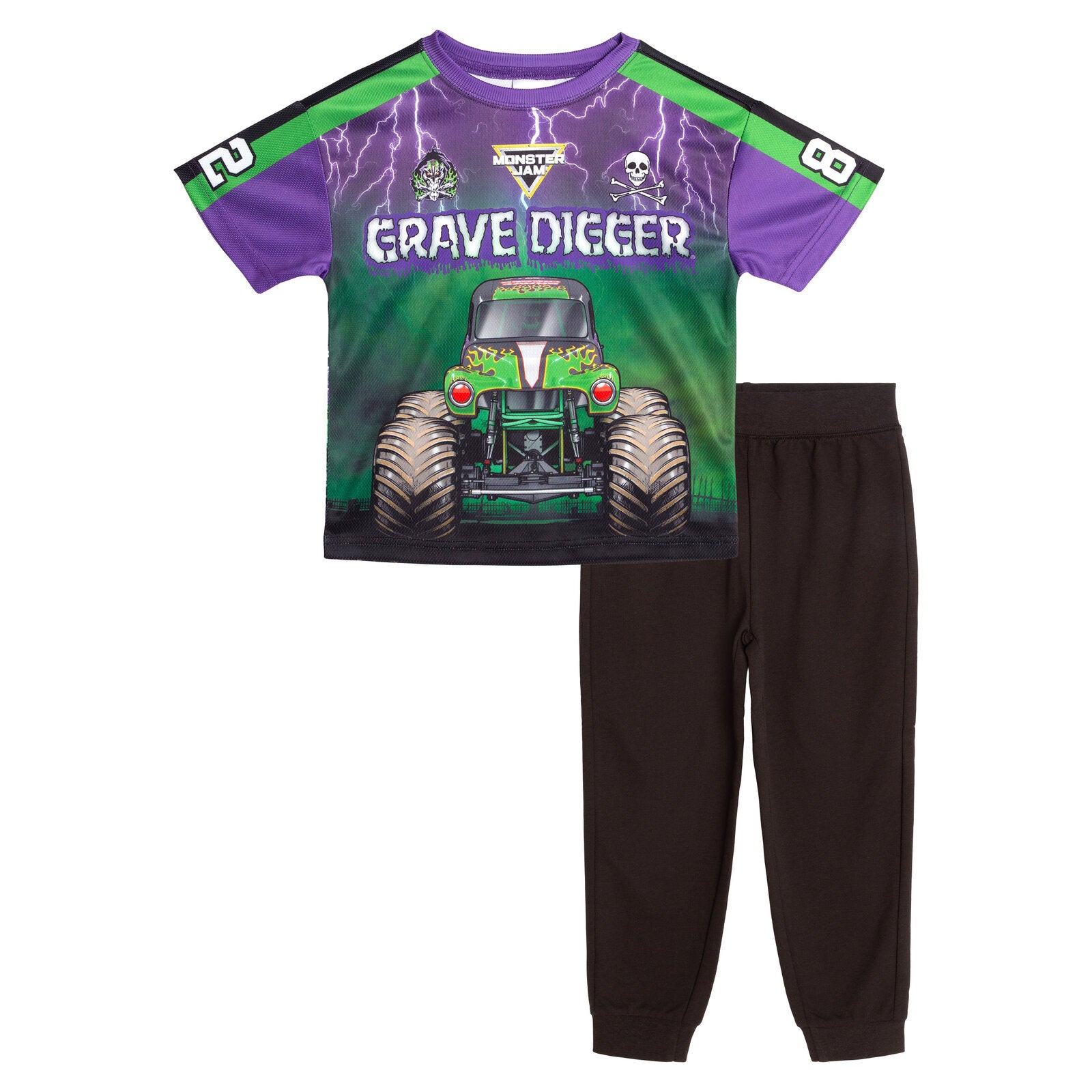 • Officially licensed Monster Jam Grave Digger toddler boys short sleeve graphic tee shirt and pants
