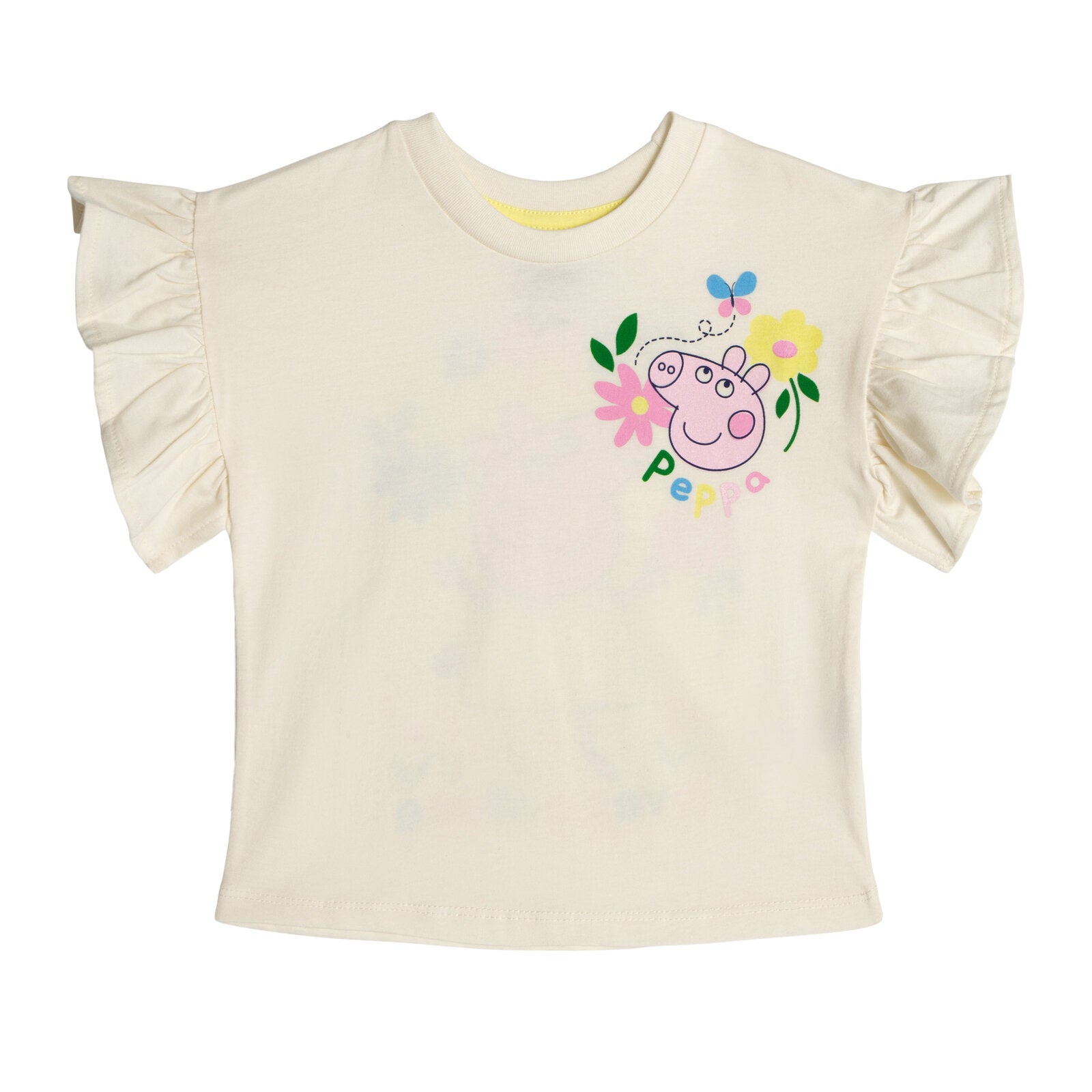Get your little one ready for a fun day out with this adorable Peppa Pig girls ruffled t-shirt and leggings outfit set. Perfect for toddlers to little kids, this outfit features a cute Peppa Pig graphic on the shirt and ruffled sleeves for added flair. The comfortable leggings ensure easy movement for all-day play. Your child will love showing off their favorite character in this stylish and playful outfit, perfect for any occasion. Add this set to your child's wardrobe for a versatile and cute look they'll love to wear.
