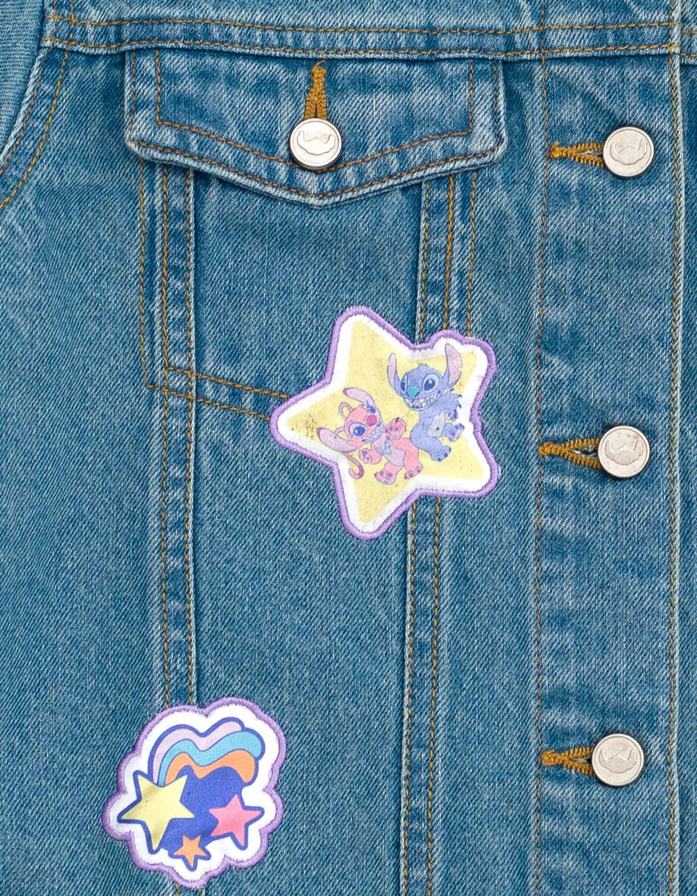 Add a touch of Disney magic to your little one's wardrobe with this adorable Lilo and Stitch blue denim jacket! Perfect for toddlers to big kids, this jean jacket features cute patch artwork of iconic characters Stitch and Angel from Lilo and Stitch on the front and back. Made from durable denim, this jacket is both stylish and practical. Your child will love showing off their love for these beloved characters while staying warm and comfortable. A must-have for any Disney fan, this jacket is sure to become a favorite. Get yours today!
