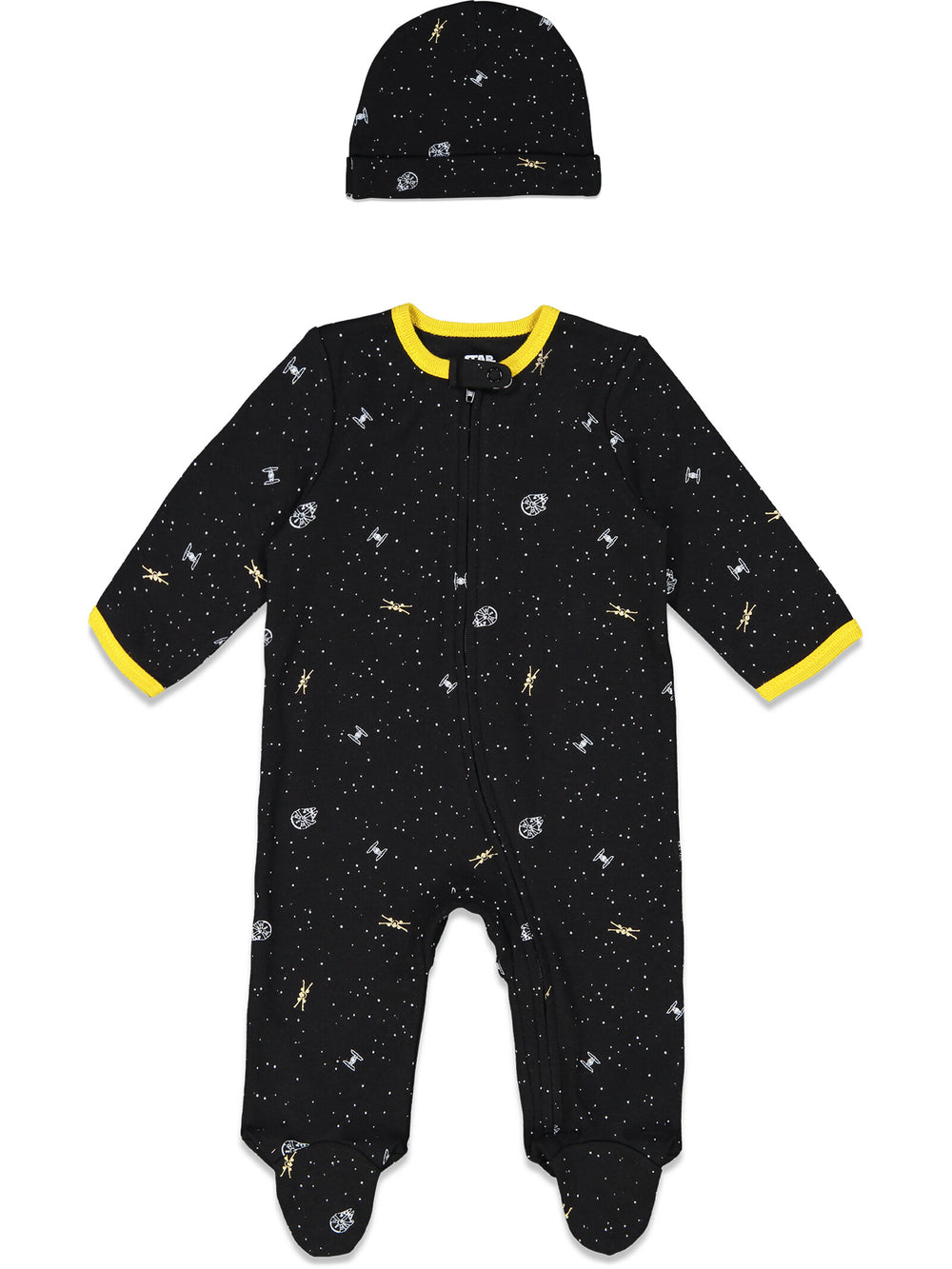 Star Wars Zip Up Sleep N' Play Bodysuit Jogger Pants and Hat 4 Piece Outfit Set