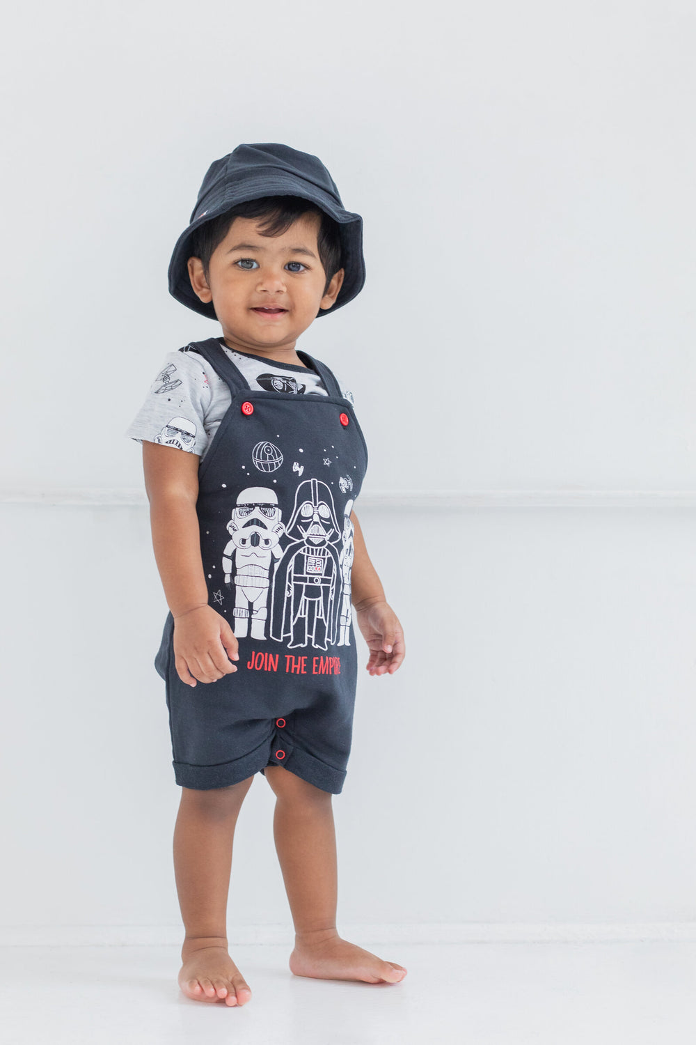 STAR WARS French Terry Short Overalls T-Shirt and Hat 3 Piece Outfit Set