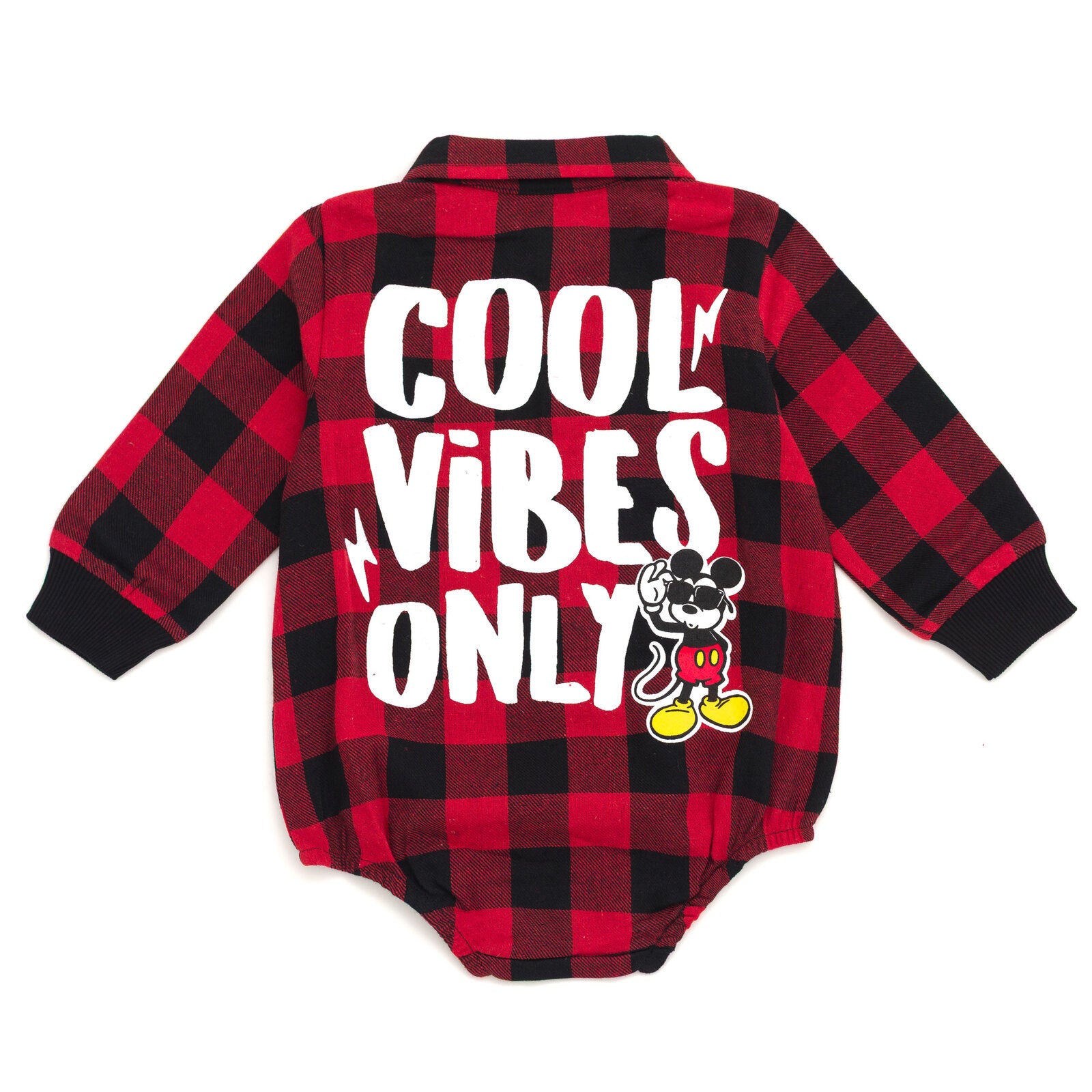 Disney Mickey Mouse Baby Plaid Flannel Button-Down Bodysuit Newborn to Infant