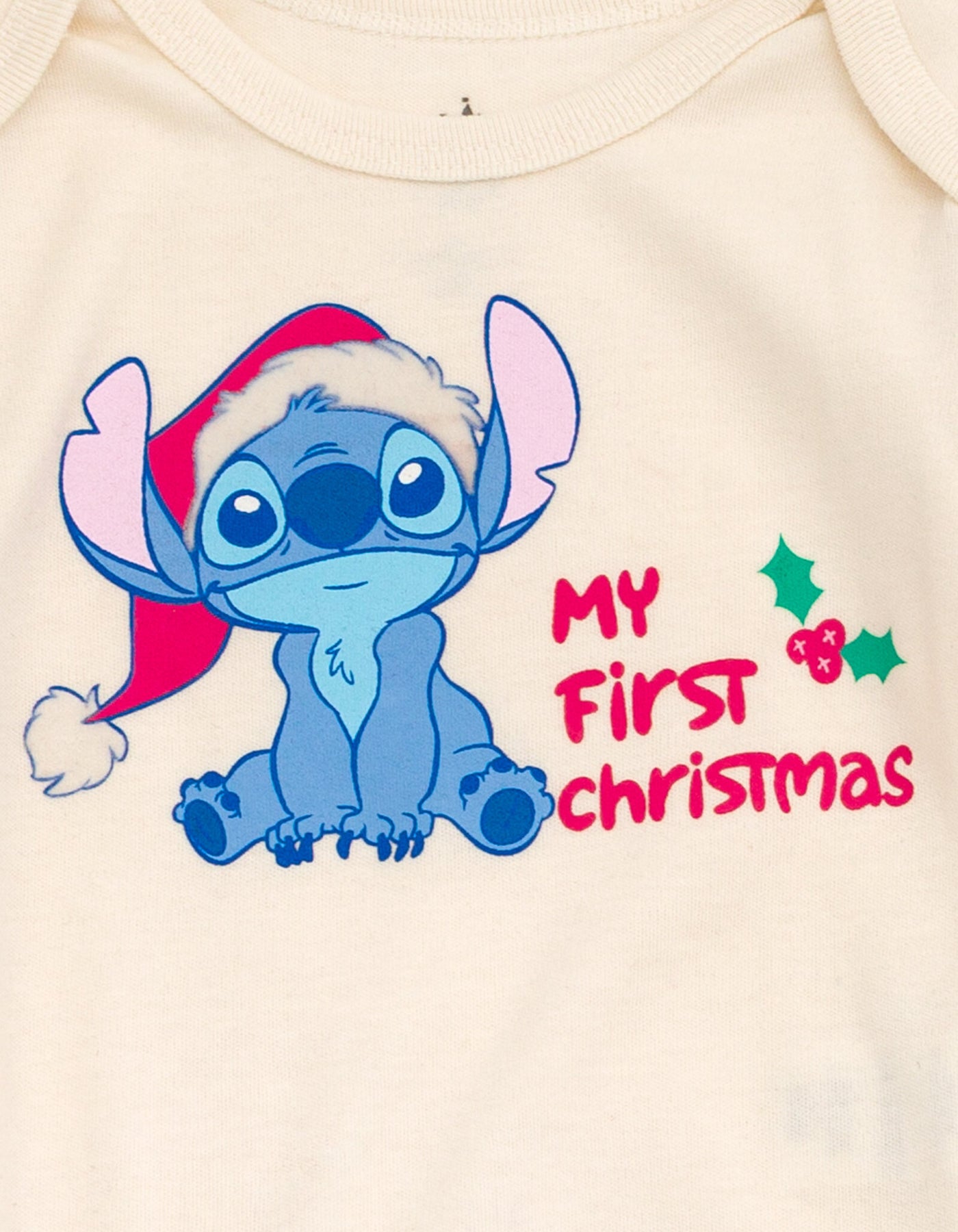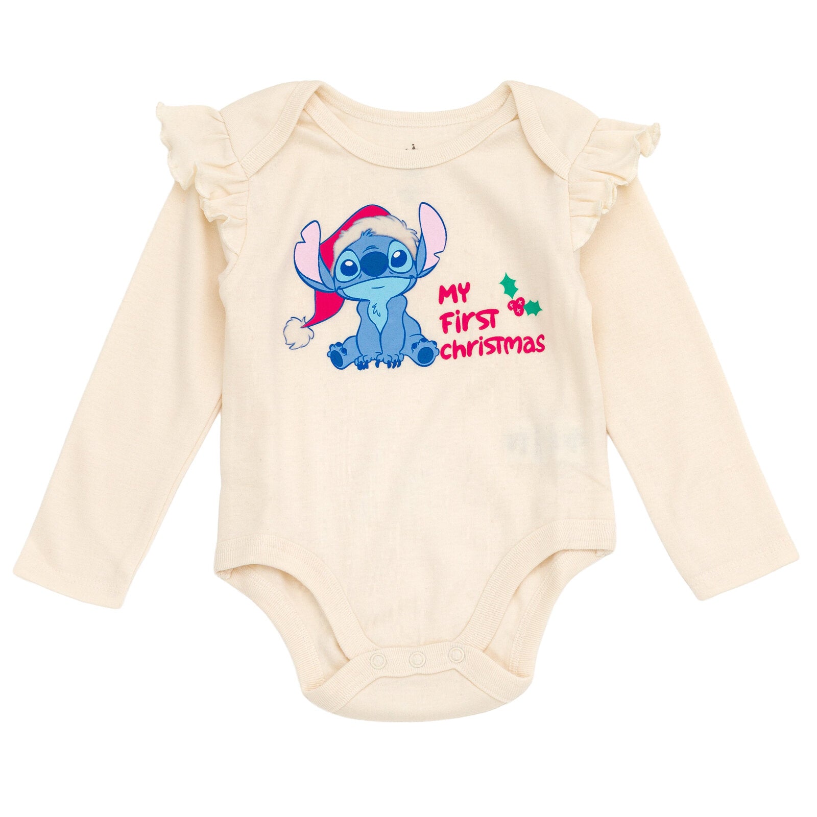 Disney Lilo & Stitch Christmas Baby Girls Bodysuit, Pants and Headband 3 Piece Outfit Set Newborn to Infant