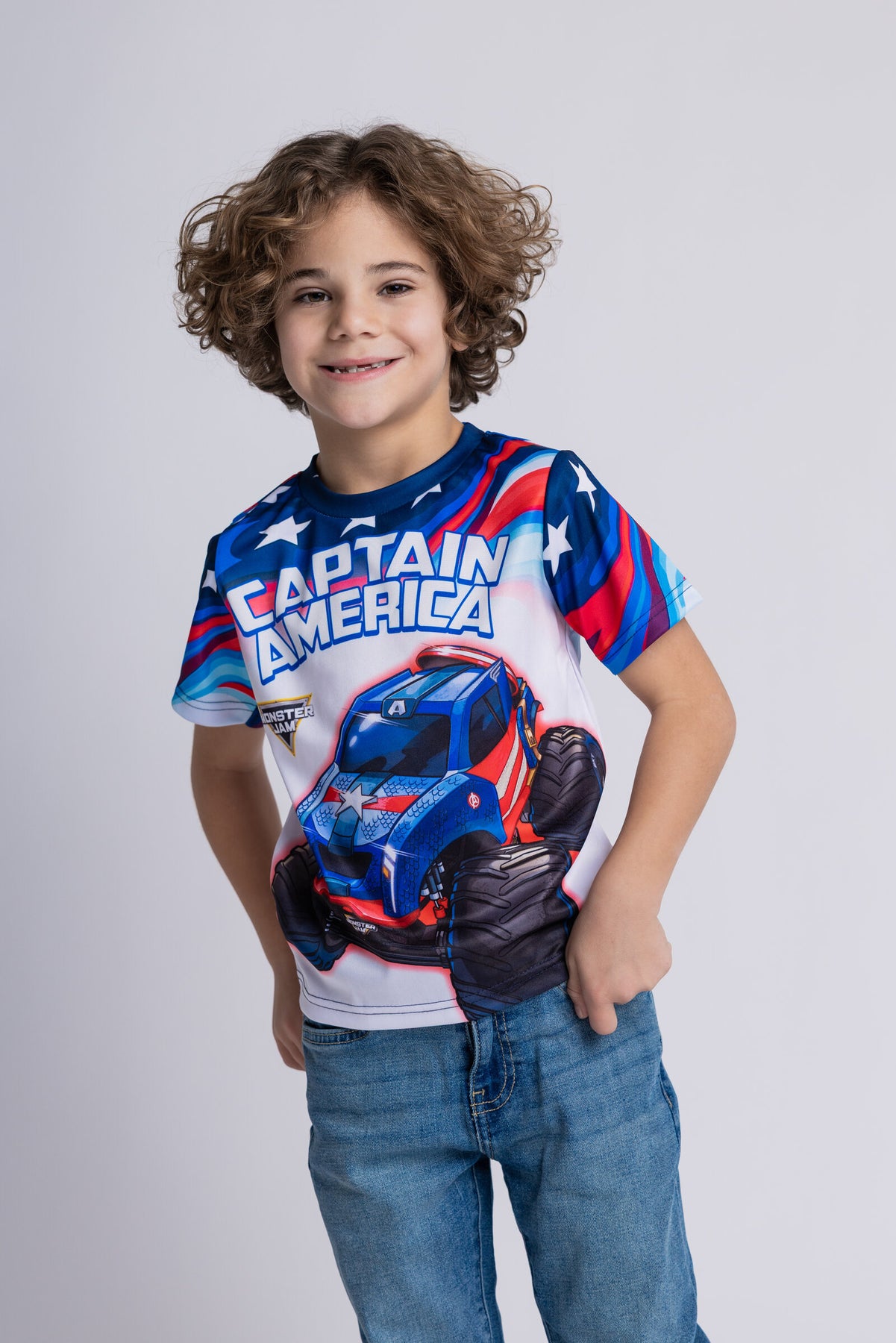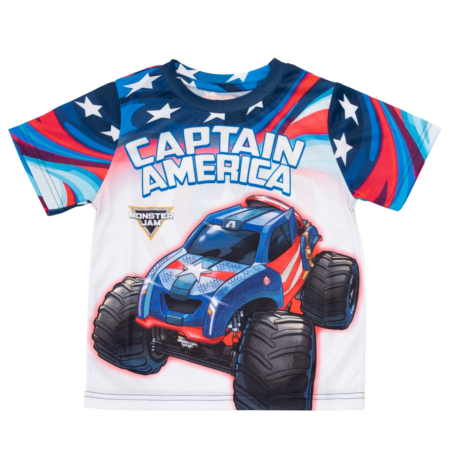 • Officially licensed Monster Jam Captain America toddler boys short sleeve graphic tee shirt