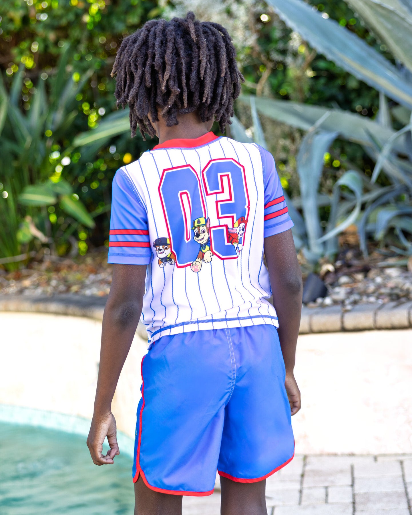 • Officially licensed Nickelodeon Chase Marshall Rubble toddler boys short sleeve swim shirt top and swimming shorts bottoms