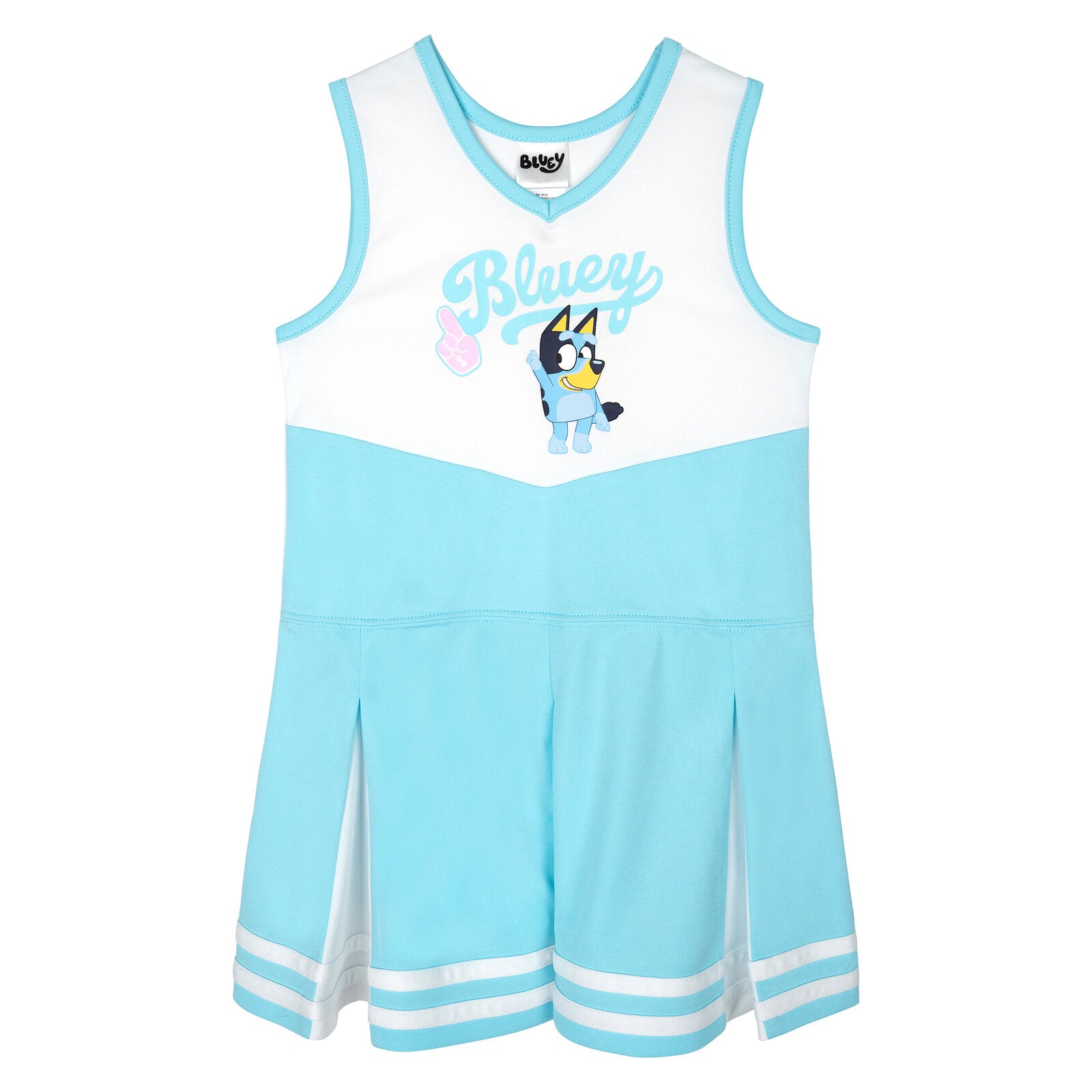 Get your young cheerleader ready to show off their spirit with this Bluey Girls Cheerleader Pleated Athletic V-neck Dress. Available in sizes for toddlers to big kids, this dress features a classic pleated design and a flattering V-neck style. Perfect for practice or game day, this dress is comfortable and stylish, allowing your child to move freely and confidently. Made with high-quality materials, this cheer dress is durable and easy to care for. Make sure your little one stands out on the field or sidelines in this adorable and athletic cheerleader dress.