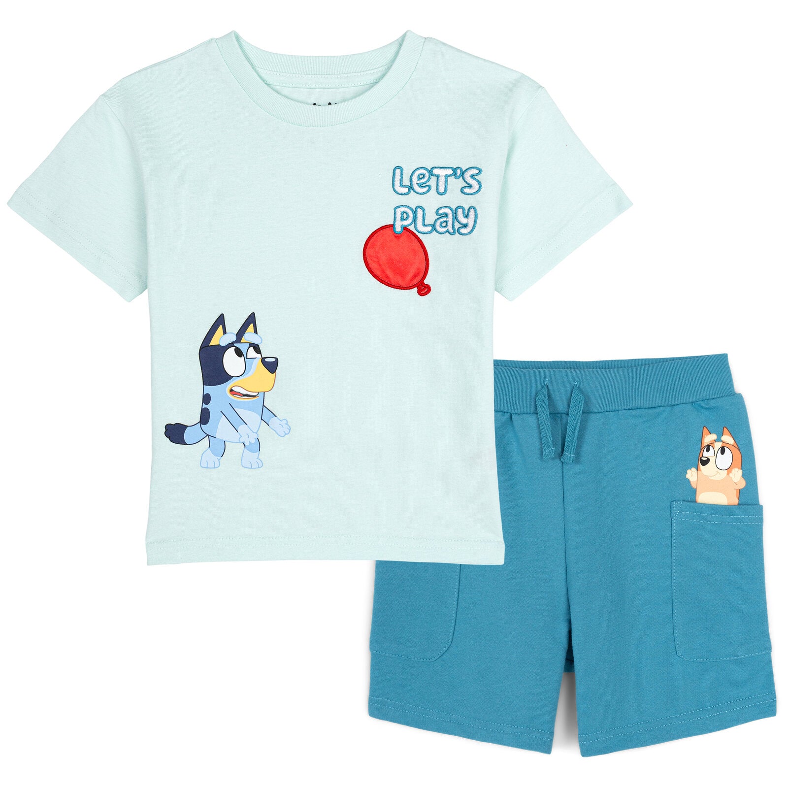 • Officially licensed Bluey Bingo toddler boys short sleeve graphic tee shirt and shorts