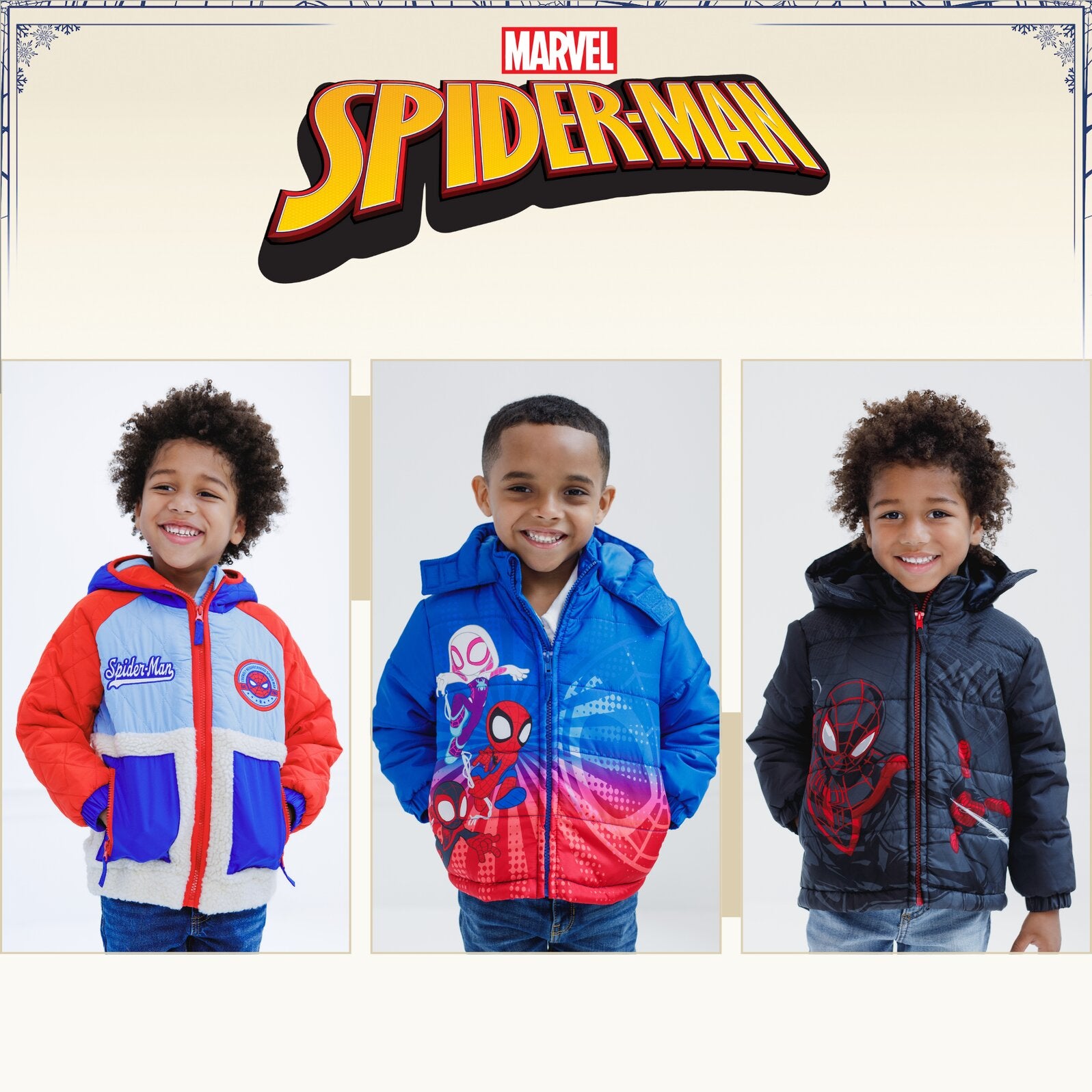 Get your little superhero ready for any adventure with this Marvel Spider-Man Zip Up Jacket! Made with cozy sherpa and diamond quilt material, this colorblock jacket will keep your child warm and comfortable. The bold Spider-Man design on the front adds a fun touch, while the zip-up closure ensures a secure fit. Perfect for toddlers to big kids, this jacket is a must-have for any Spider-Man fan. Whether they're swinging through the city or playing outside, your child will love wearing this stylish and functional jacket. Available in a range of sizes, it's the perfect addition to their wardrobe. Order now and let your child unleash their inner hero!