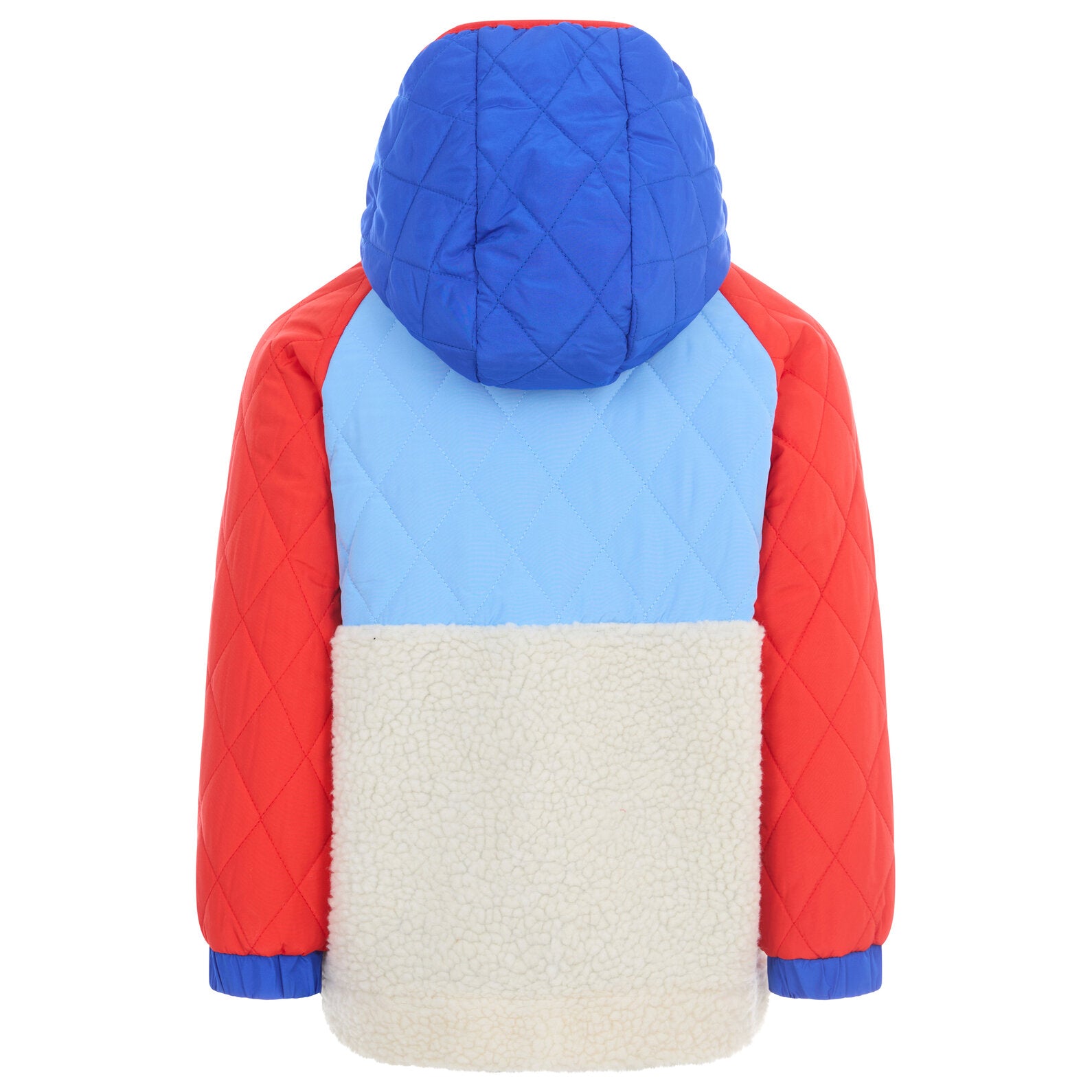• Zip up front for easy dressing; Loop beneath hood for easy hanging; Awesome sublimation print design; Embroidered applique patch; Functional pockets; Elastic sleeve cuffs for a better fit; Comfy faux-shearling material; Color block design