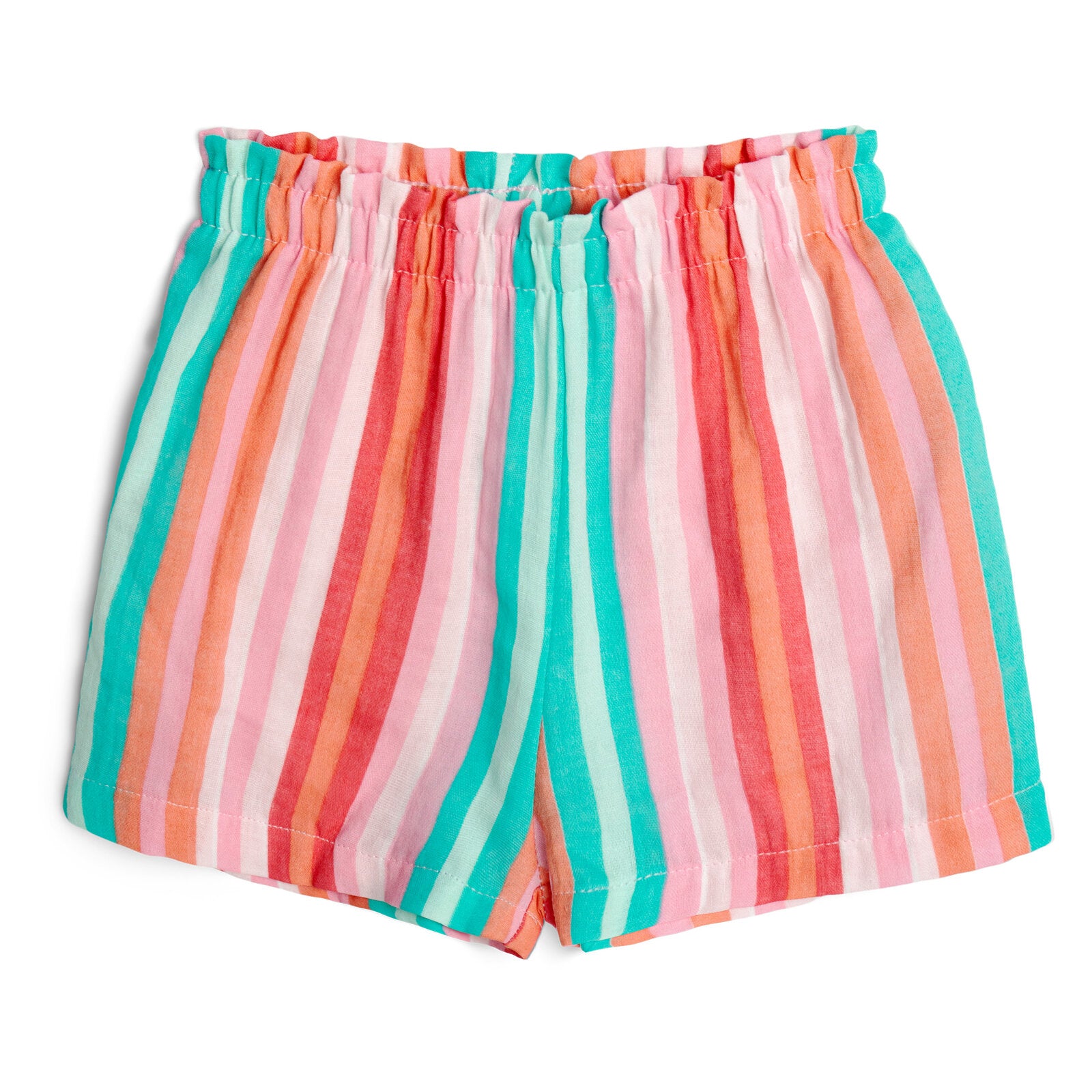 • All over print design; Rib knit crew neck collar; Awesome screen print artwork; Cute and stylish flutter sleeves; Elastic waist for comfortable stretch and a better fit; Pull on closure; Stripe pattern shorts; Paperbag waist for a stylish look; Comfortable and lightweight cotton gauze fabric that is perfect for the summer