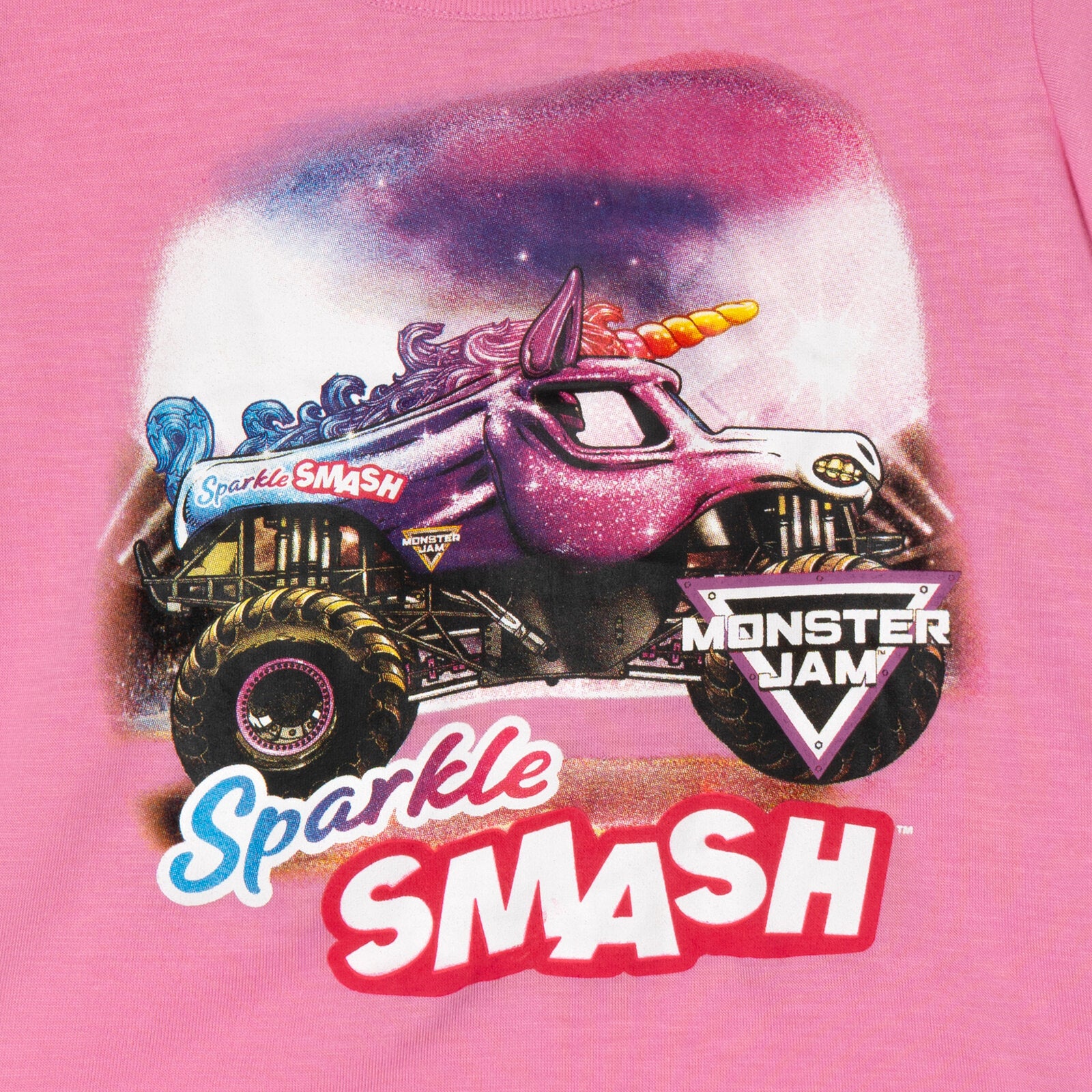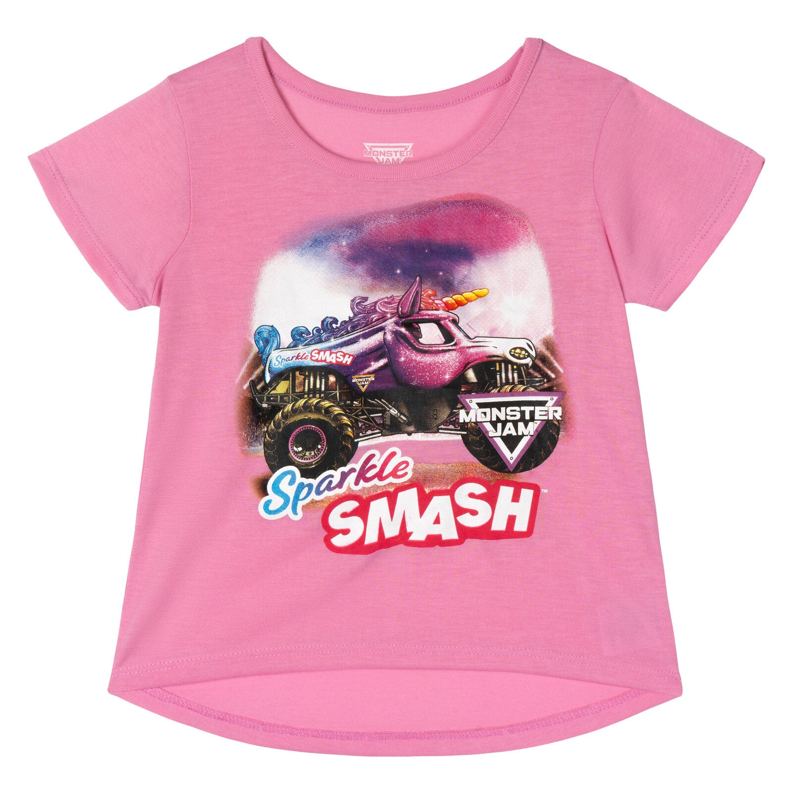 • Officially licensed Monster Jam Sparkle Smash toddler girls short sleeve graphic tee shirt and shorts