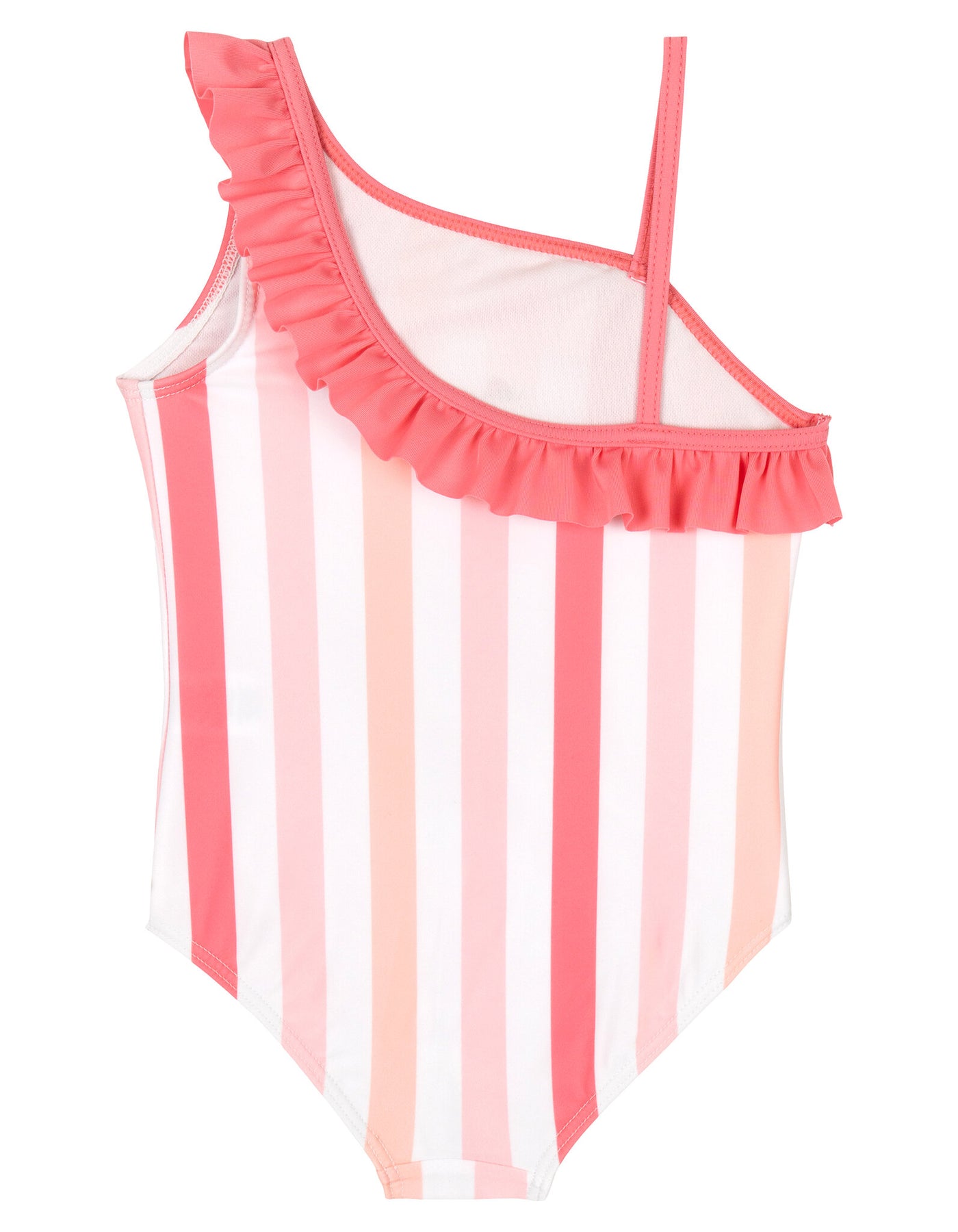 - All over print design; Awesome sublimation print artwork; UPF 50+ material for excellent UVB and UVA sun protection and worry-free sun time; 4 way stretch fabric for comfort and long-lasting fit; One shoulder asymmetrical top neckline; Fully lined; Ruffle trim on straps; Pull on closure; Stripe pattern design; Quick dry