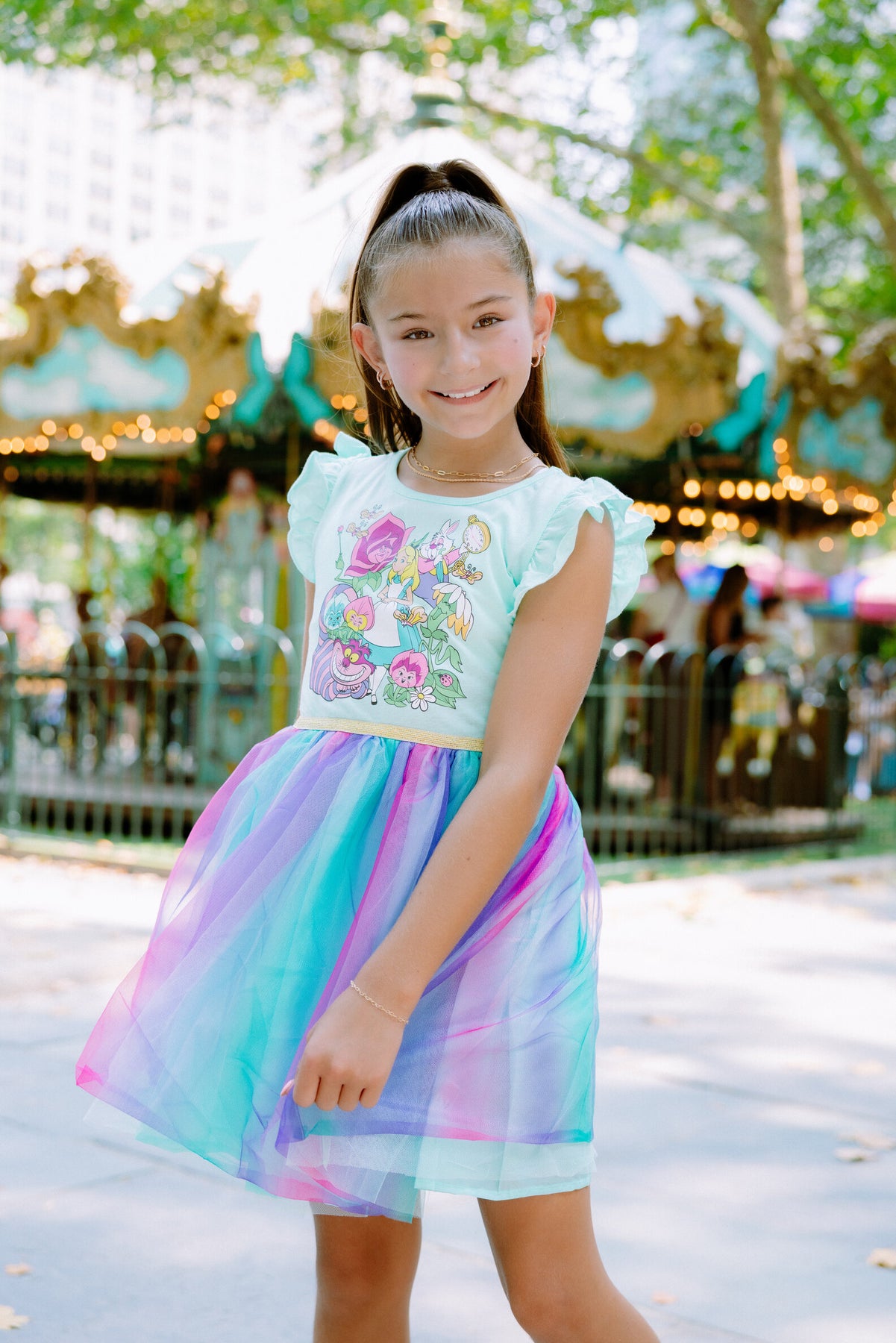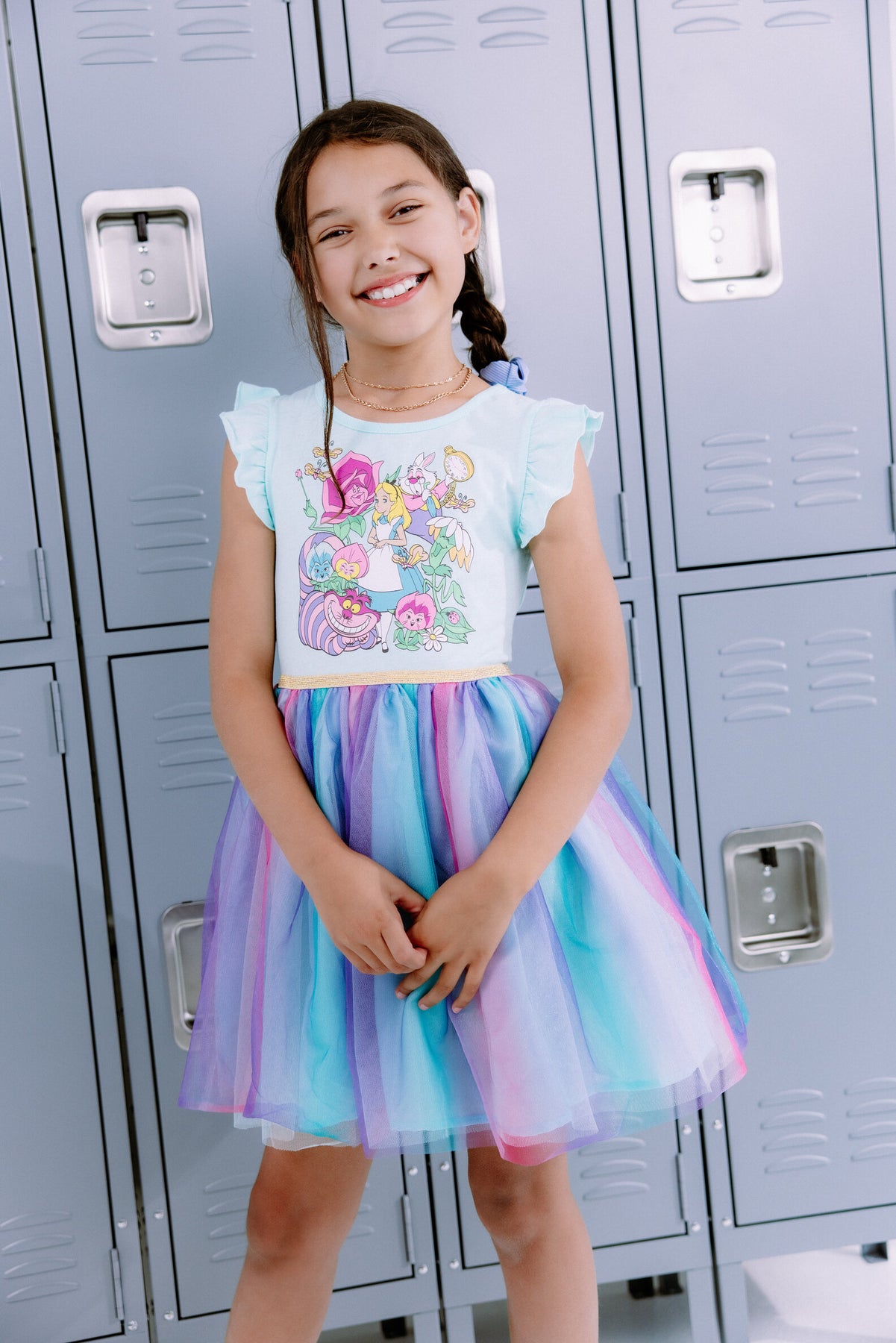 - Officially licensed Disney Alice Cheshire Cat White Rabbit toddler girls sleeveless dress