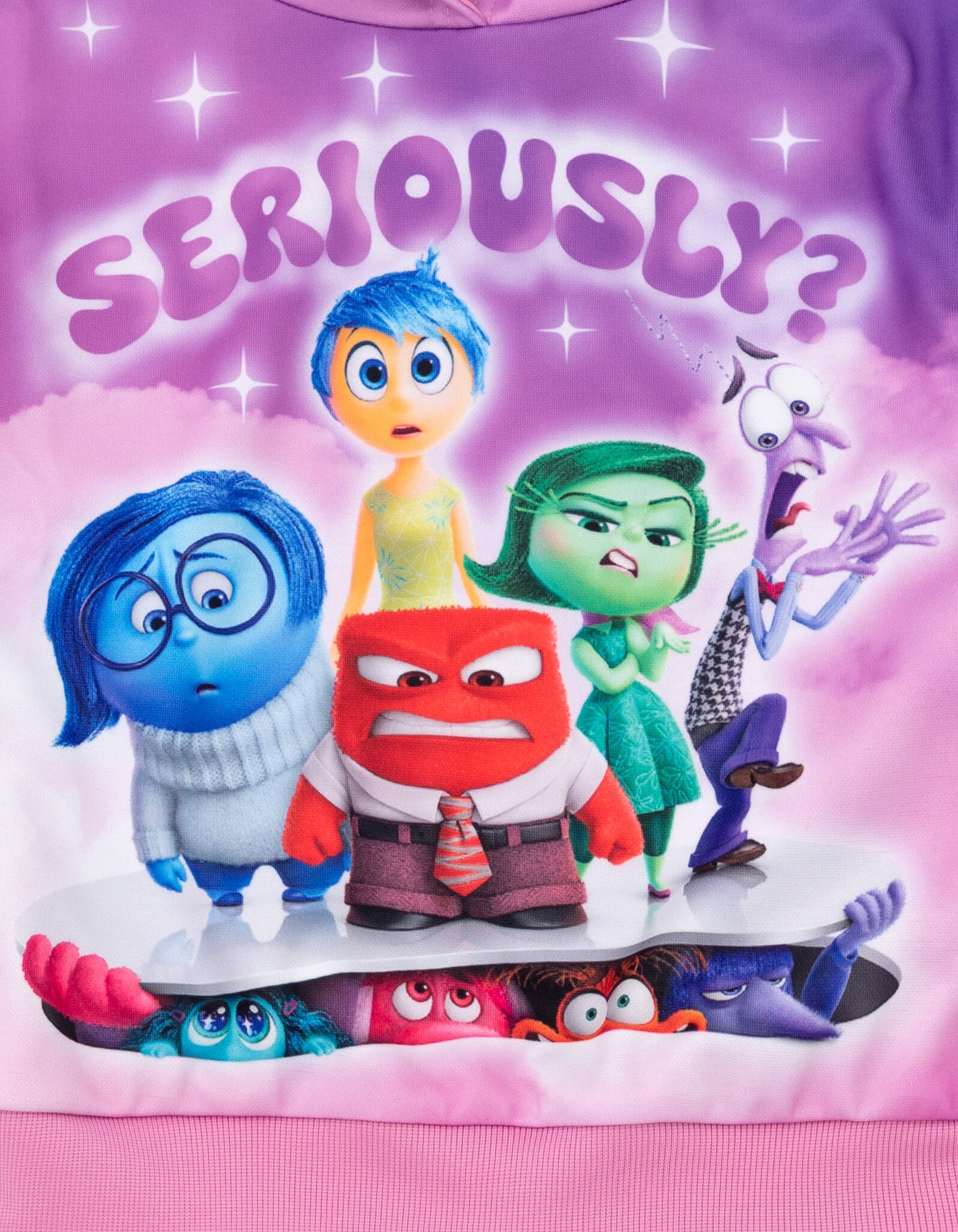 • Officially licensed Disney Joy Anger Anxiety Disgust little girls long sleeve graphic hooded sweatshirt