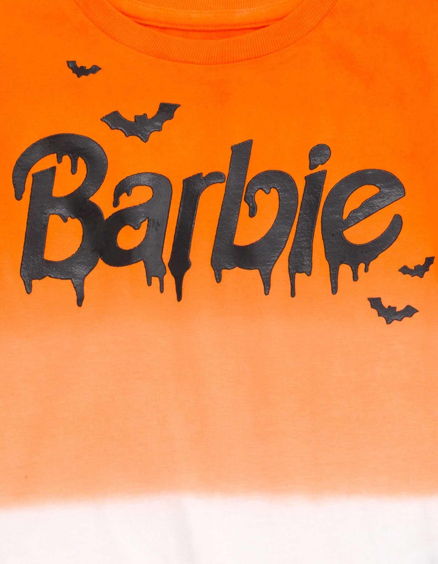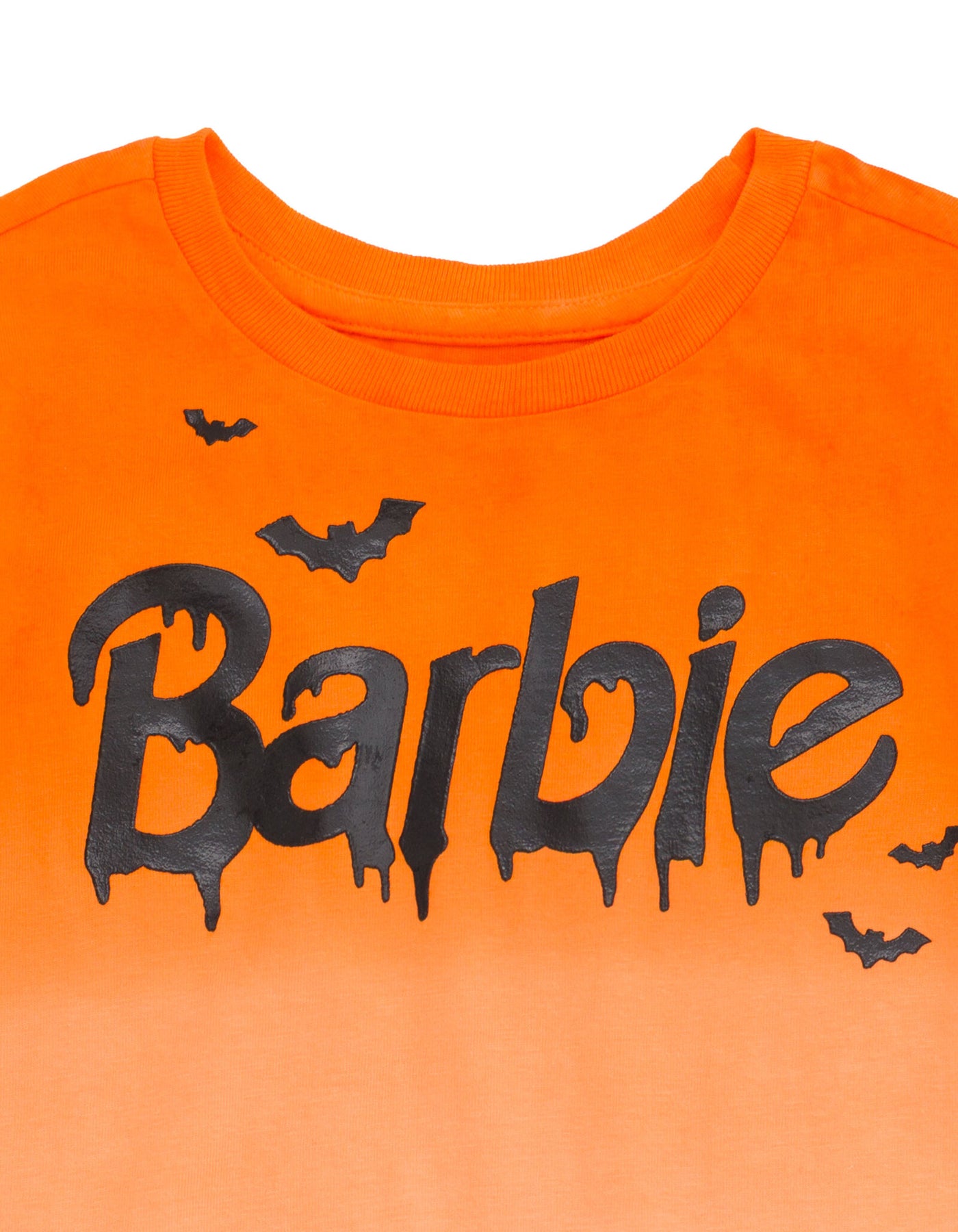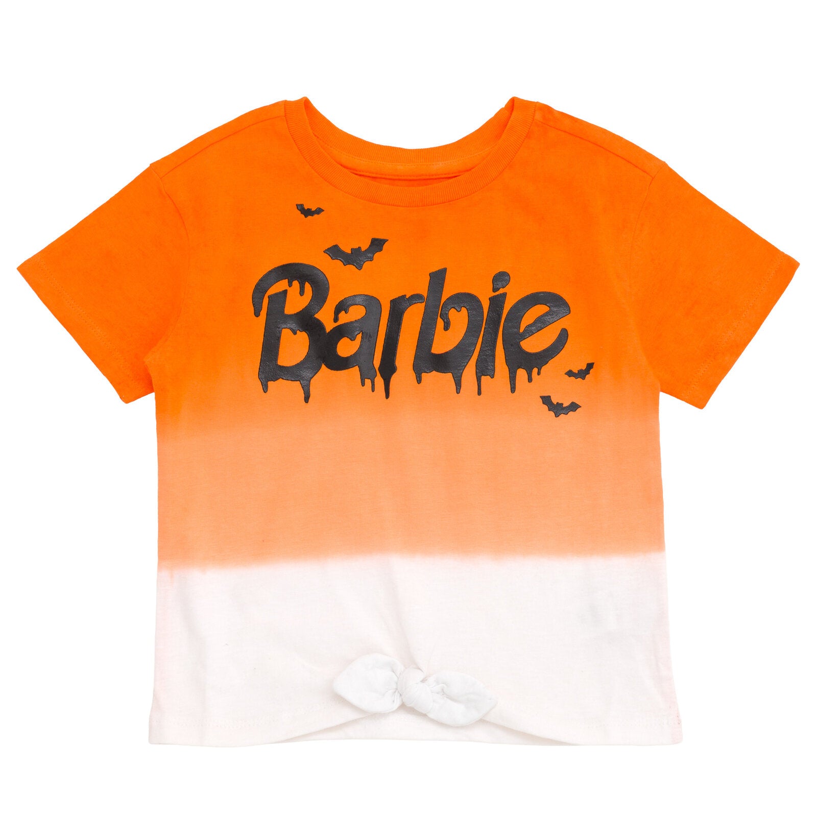 Get ready for an adventure in the Dreamhouse and embrace Barbie's amazing sense of style in this fashionable Barbie tshirt! This cute short sleeve tee features a cool ombre orange color and iconic Barbie logo artwork with a spooky Halloween design that your little girl. Made of a soft material that keeps your little fashionista comfortable, this stylish Barbie top is perfect for all day fun and play! BARBIE (R) and associated trademarks and trade dress are owned by, and used under license from, Mattel. (c) 2025 Mattel.
