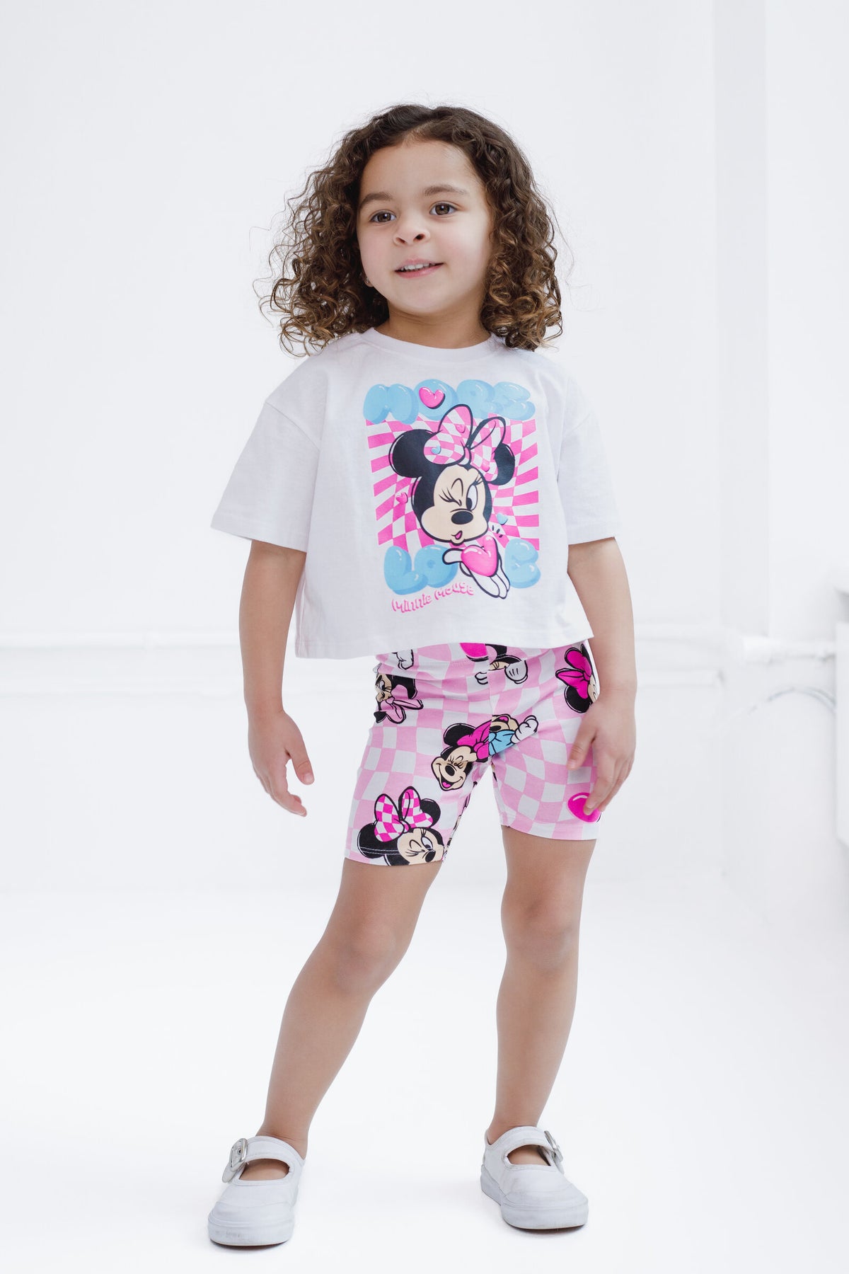 Disney Minnie Mouse Cropped Boxy T-Shirt and Bike Shorts Outfit Set