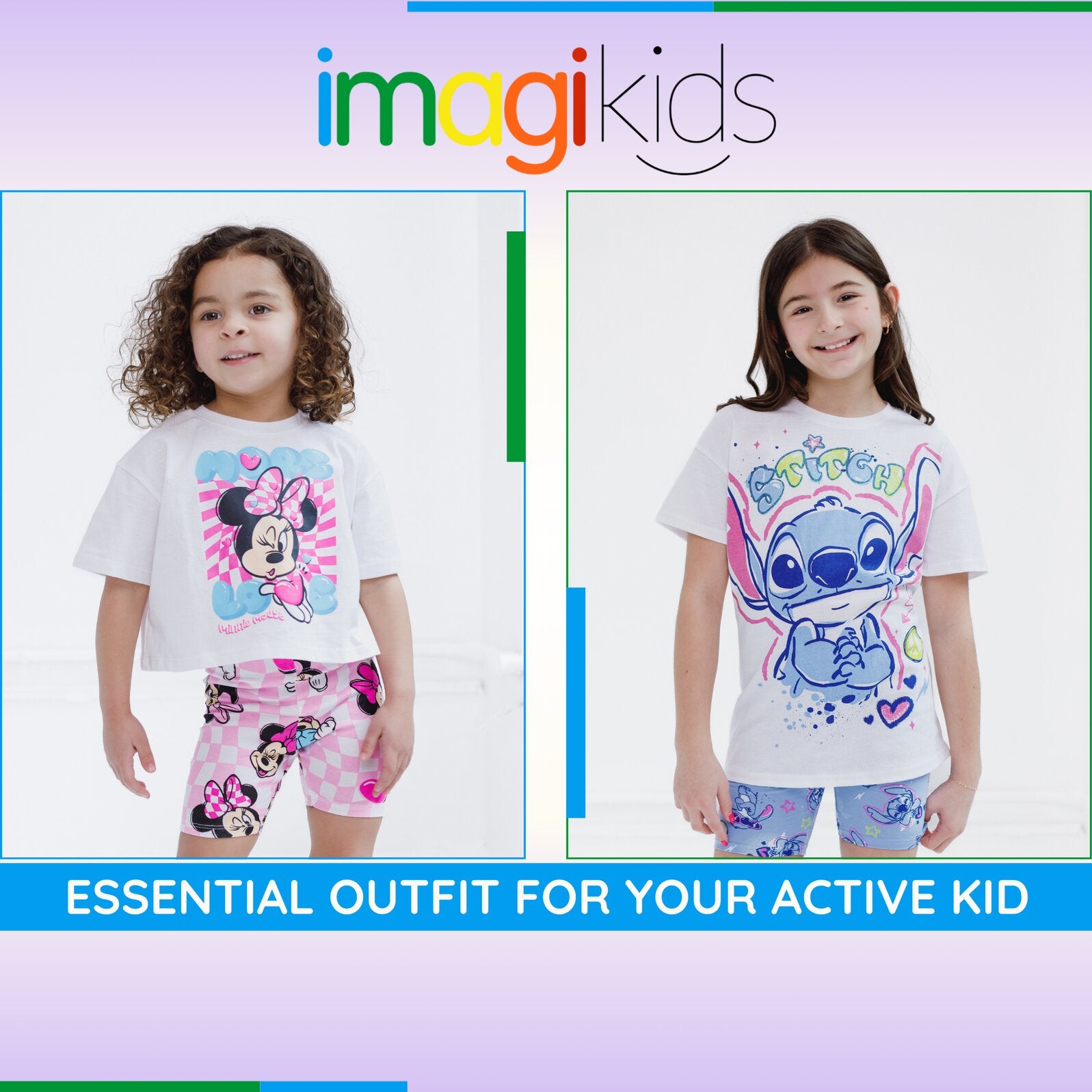 Get your little one ready for a day of fun with this adorable Disney Minnie Mouse outfit set! The set includes a cropped boxy t-shirt and bike shorts, perfect for any active girl. The t-shirt features a cute graphic of Minnie Mouse, while the bike shorts provide comfort and flexibility for all her adventures. Available in sizes for toddlers to big kids, this outfit set is a must-have for any Minnie Mouse fan. Let your child show off their love for Disney with this stylish and comfortable outfit set.
