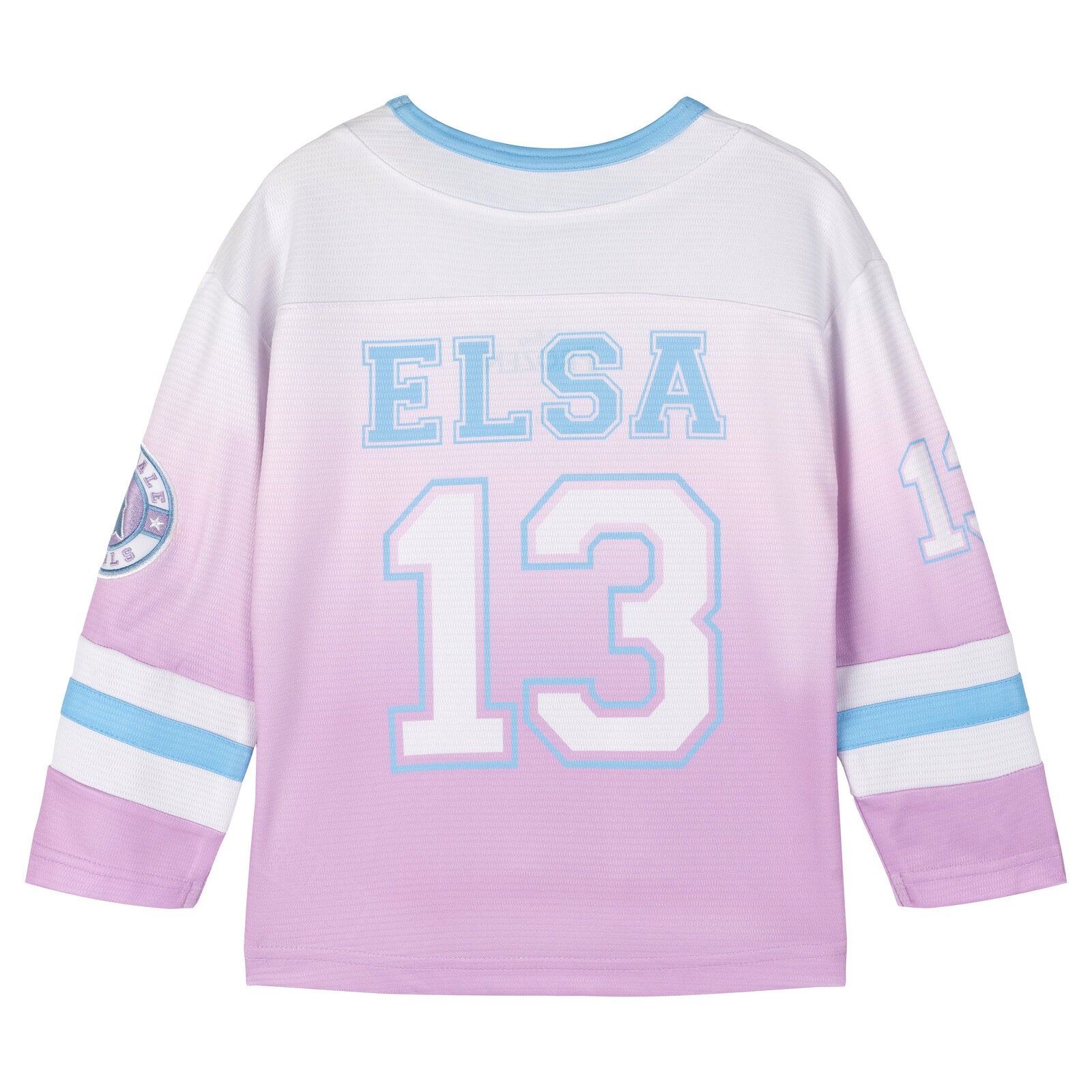 Dress your little princess in style with this Disney Frozen Elsa Girls Mesh Hockey Jersey Long Sleeve T-Shirt. Perfect for toddlers to big kids, this shirt features Elsa from the popular movie, Frozen. Made of breathable mesh material, it's comfortable and stylish for everyday wear. Whether playing outside or watching her favorite movie, your child will love this fashionable and fun shirt. Get her this Elsa hockey jersey today and watch her light up with joy.