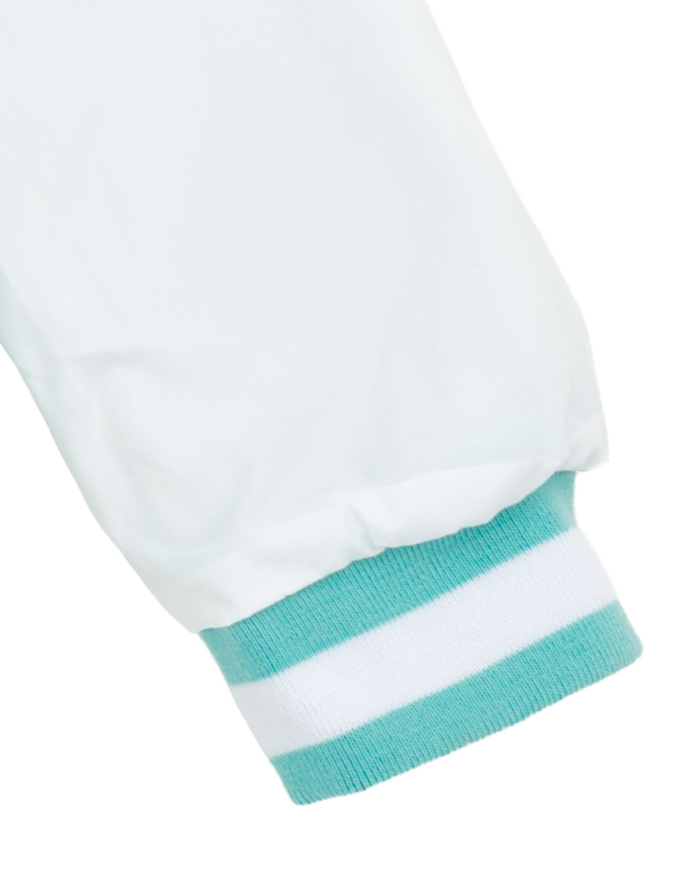 • Ribbed sleeve cuffs and waist for a better fit; Functional pockets; Snap button front closure for easy dressing; Jersey applique patch artwork; Vintage-style varsity jacket; Taffeta lining