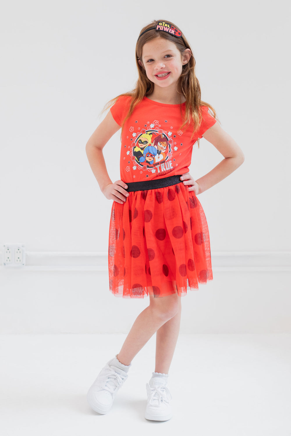 Miraculous Ladybug 3 Piece Outfit Set: T-Shirt Skirt Headband