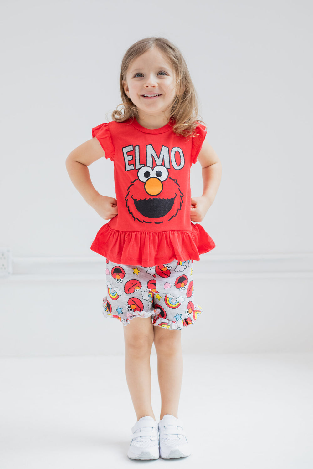 Sesame Street Elmo Peplum T-Shirt and French Terry Shorts Outfit Set
